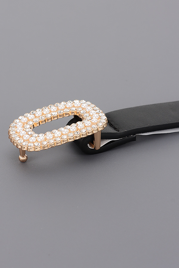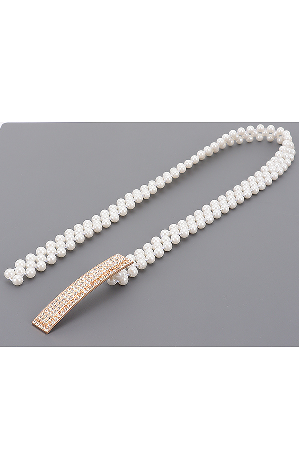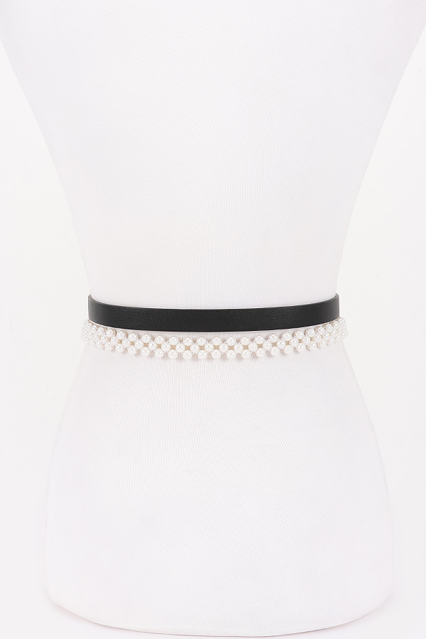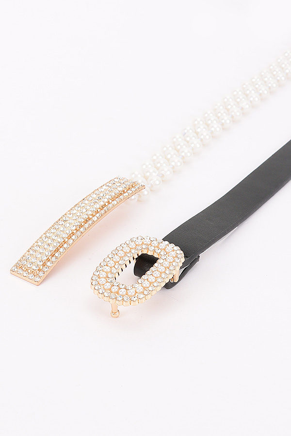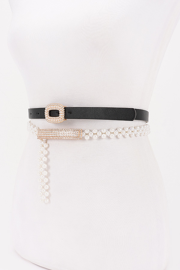 - * This Pearl & Rhinestone Layered Belt from H&D Accessories features a dual - layer design. It combines a sleek leather belt with a rhinestone - encrusted buckle and a pearl - adorned belt with a dangling pearl tassel. The mix of pearls and rhinestones creates an elegant, glamorous look.