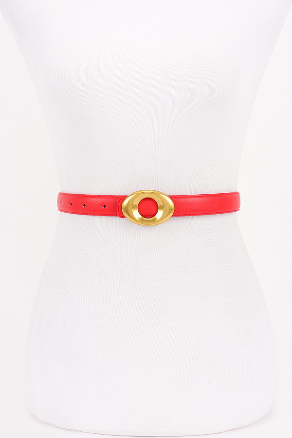 • * Metal Buckle Faux Leather Belt