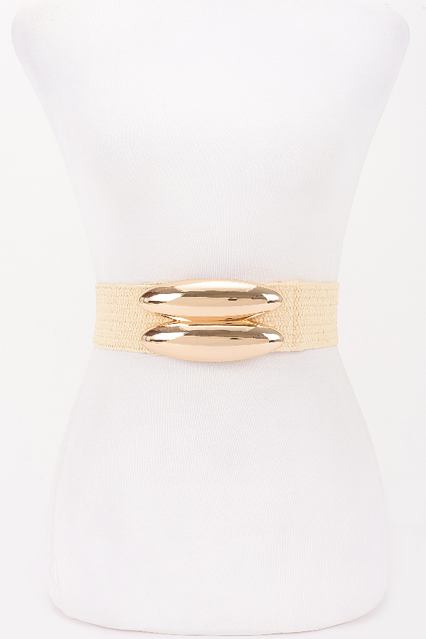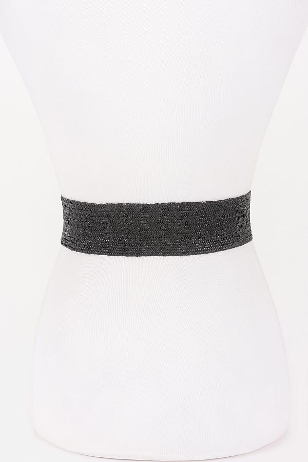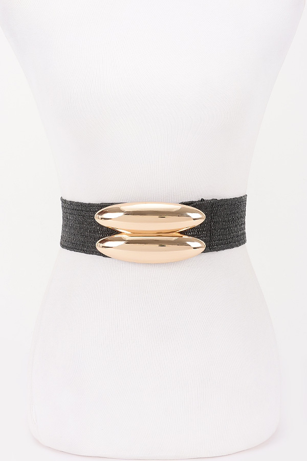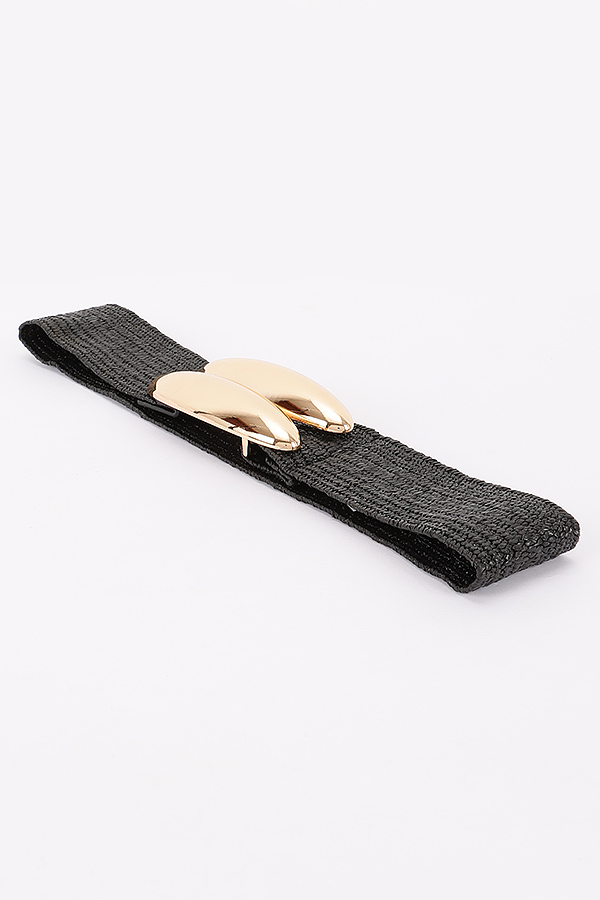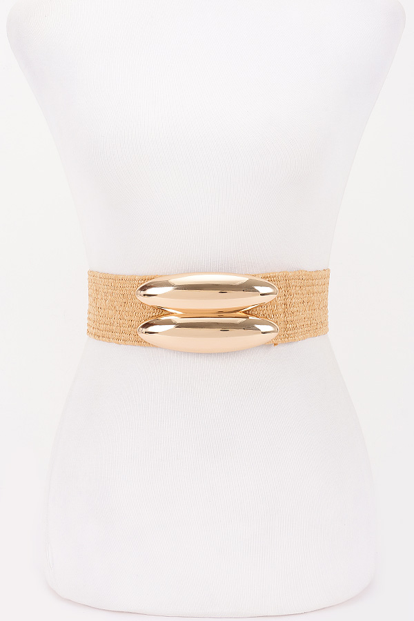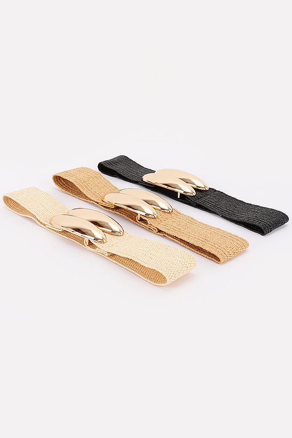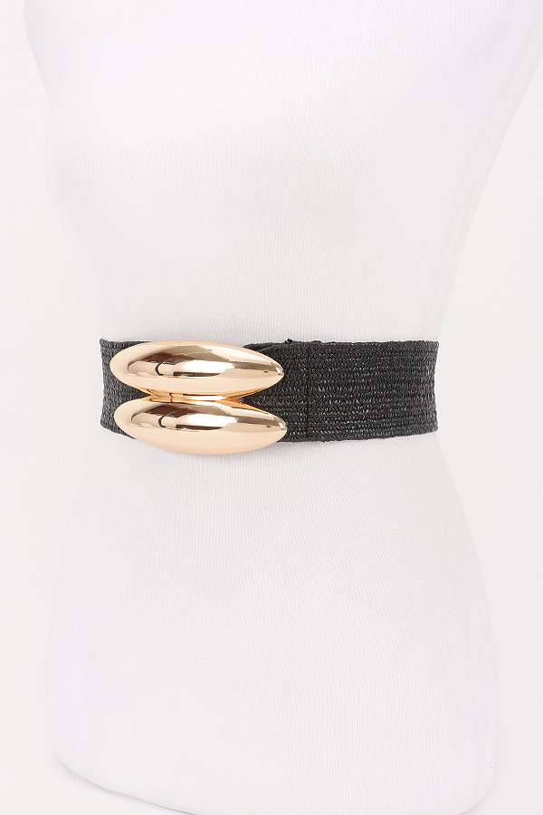 • * This is a Metal Buckle Faux Straw Elastic Belt from H&D Accessories. It features a wide, elastic faux straw band that provides a comfortable and flexible fit. The belt is adorned with a pair of sleek, oval-shaped metal buckles that add a touch of modern elegance. Ideal for cinching the waist of dresses, skirts, or oversized tops, it suits casual outings, beach vacations, or summer parties, adding a stylish and functional accent to your ensemble.