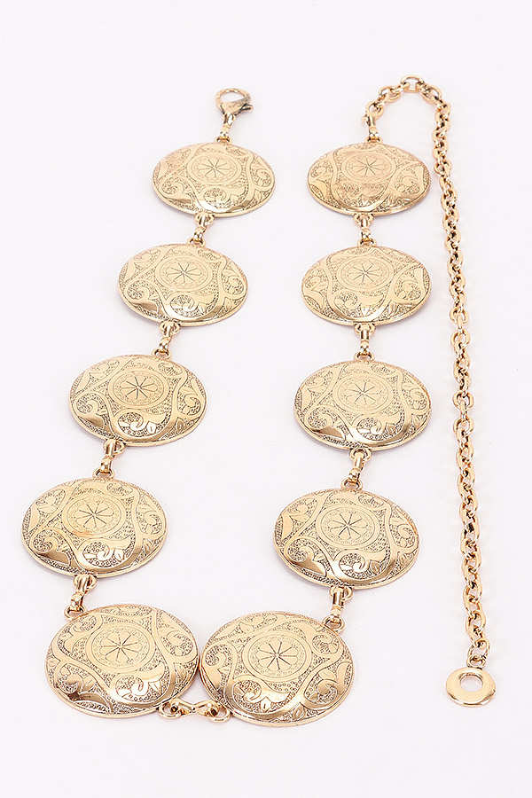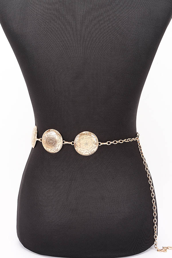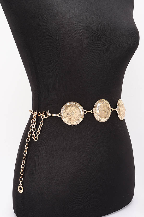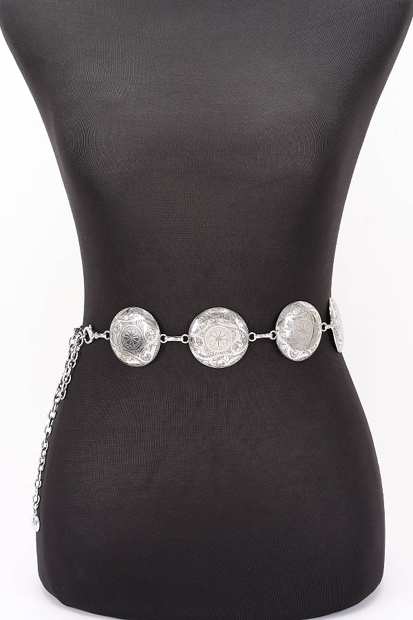 - * This Vintage Metal Chain Belt from H&D Accessories features a design with ornate metal discs linked by a chain. It has an antique and elegant appearance, giving off a retro and stylish vibe.Ideal for complementing outfits at vintage - themed or bohemian - style parties, adding an authentic retro touch to the look.