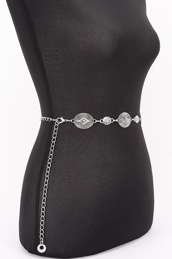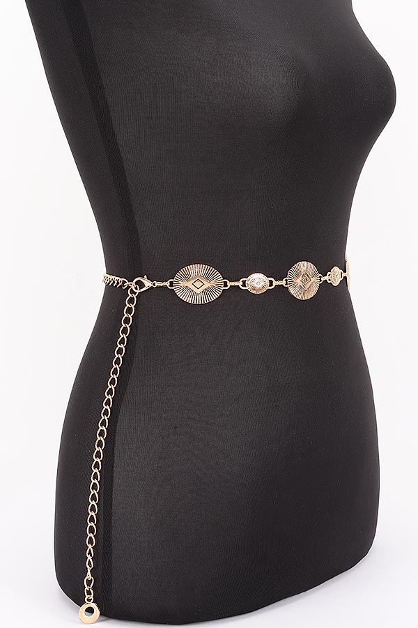 • * Vintage Metal Chain Belt from H&D Accessories features an intricate design with metal charms adorned with geometric and sunburst patterns, connected by delicate chains. It comes with an adjustable chain strap for a customized fit. Ideal for adding a touch of retro elegance to flowy dresses, enhancing the waistline of blouses, or elevating casual outfits for special occasions, this belt seamlessly blends vintage charm with contemporary style.