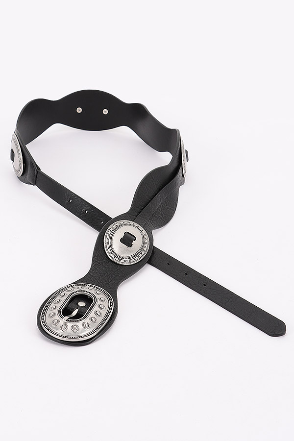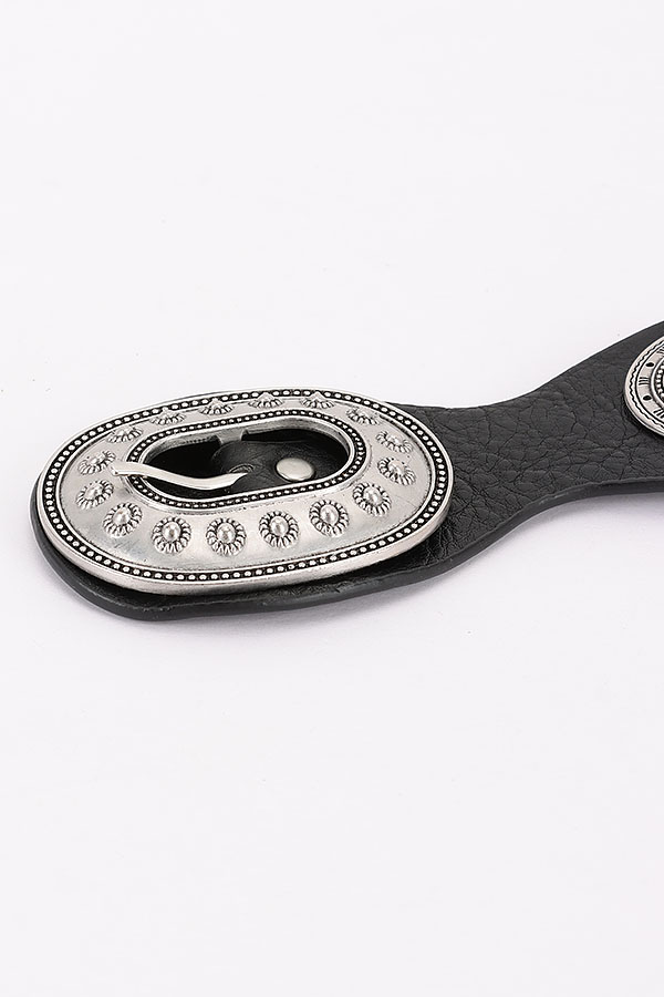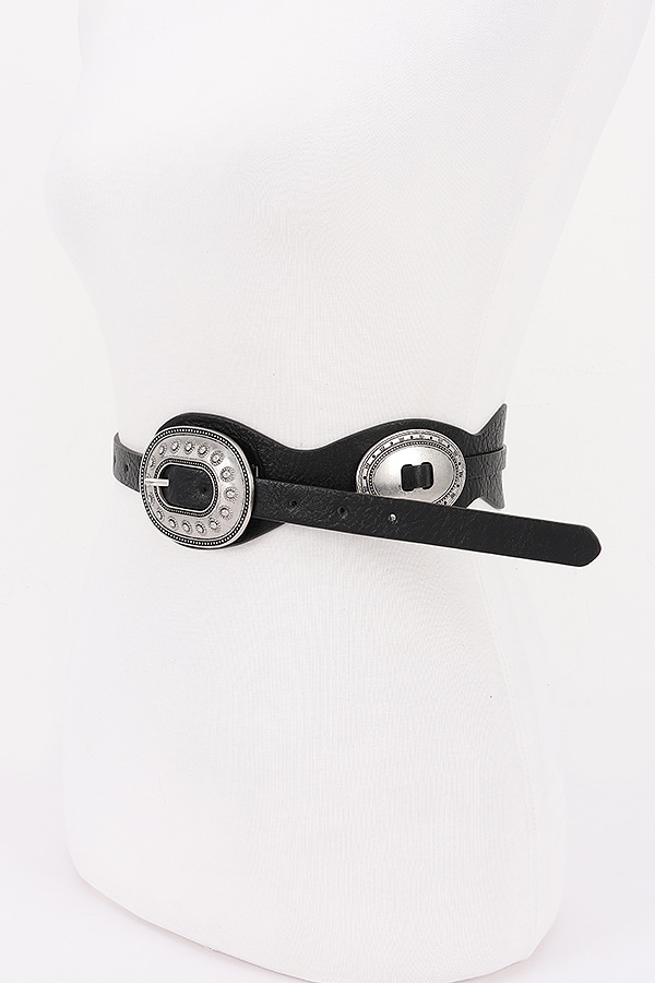 - * This Faux Leather Multi Metal Belt from H&D Accessories features a faux leather construction with an ornate multi - metal buckle. It has a classic and stylish design, giving it an elegant and fashionable appearance.
