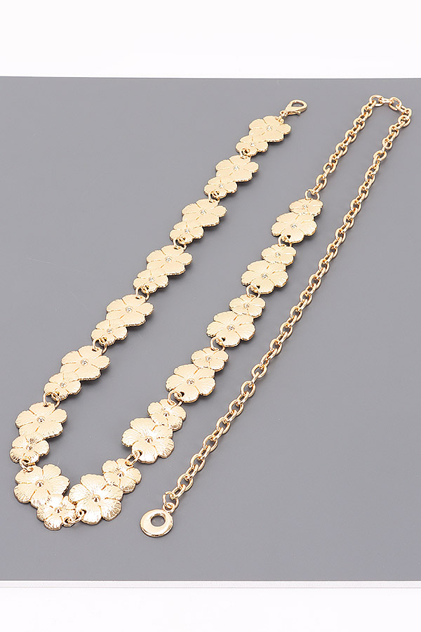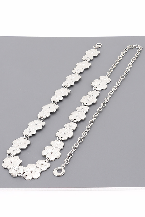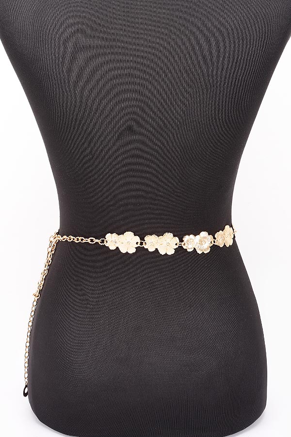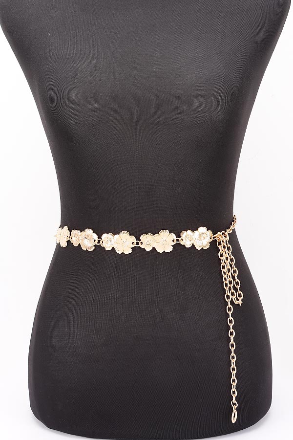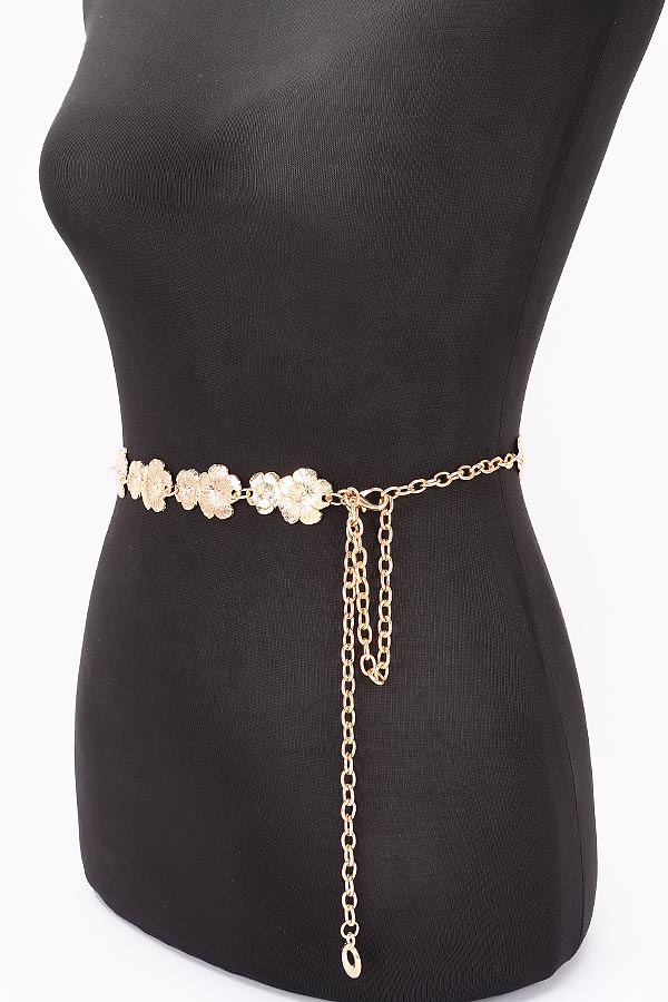 • * This is a stylish belt from H&D Accessories. It features a series of delicate flower-shaped embellishments connected by a chain, with an adjustable chain extension for a customized fit. The intricate design adds a touch of elegance and charm. It's perfect for cinching the waist of a flowy dress to create a more defined silhouette, or adding a chic accent to a jumpsuit or high-waisted pants, making it ideal for both casual outings and special occasions like garden parties or evening events.