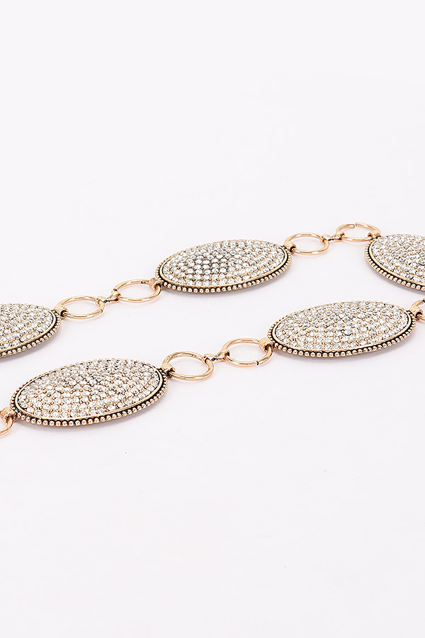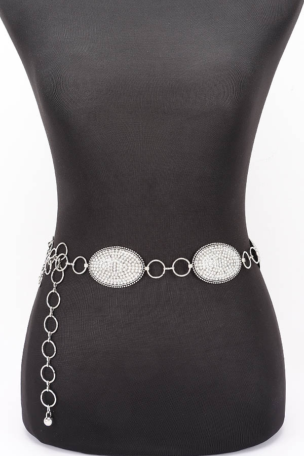 - * This is a Rhinestone Chain Belt from H&D Accessories. It features a series of oval plaques encrusted with sparkling rhinestones, connected by a stylish chain. The intricate design and shimmering stones make it a standout accessory. It's perfect for adding a touch of glamour to your outfit when you're attending a party, a wedding, or a special evening event, effortlessly elevating a simple dress or a jumpsuit to a more dazzling look.