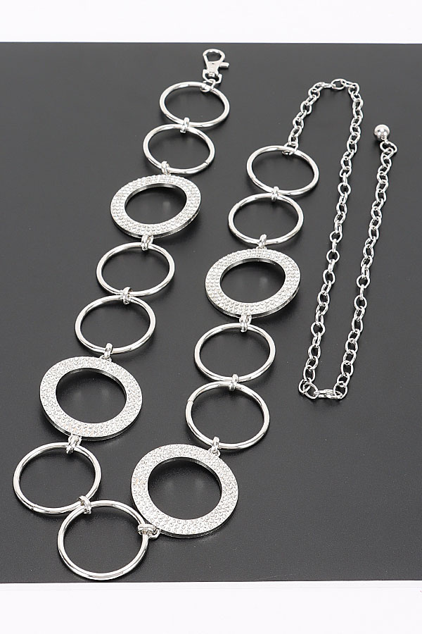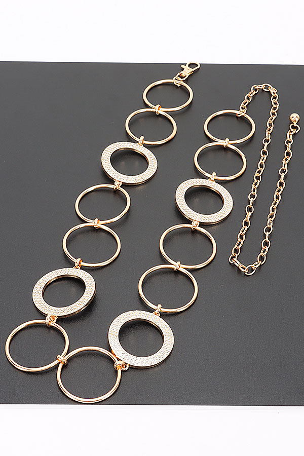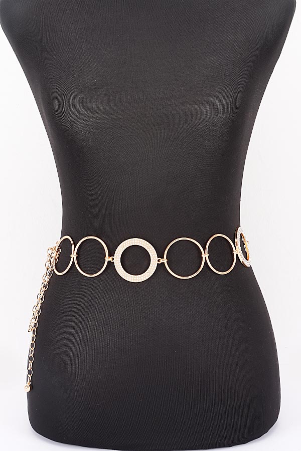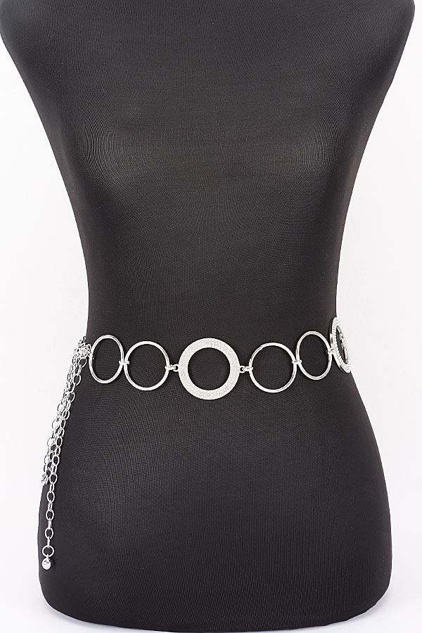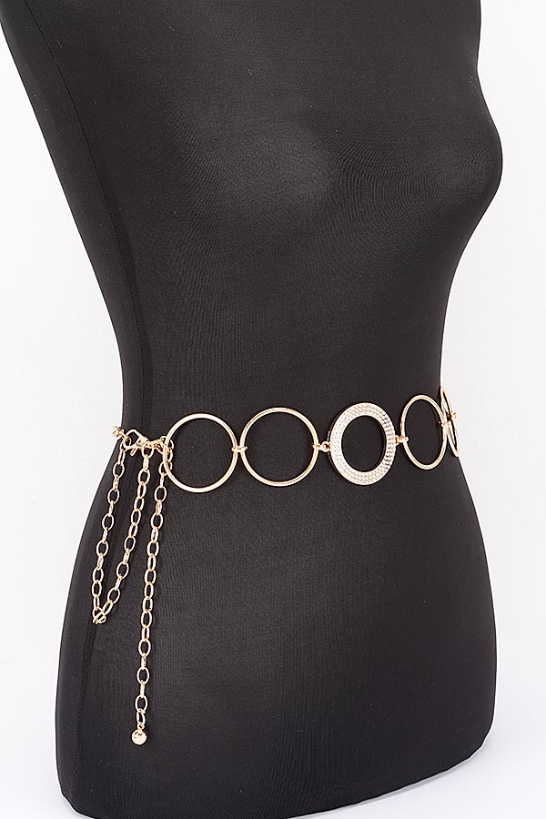 - * This Rhinestone Chain Belt from H&D Accessories features a design of connected circular elements, with one prominent circle embellished with rhinestones to create a sparkling focal point. It’s paired with an adjustable chain strap on the side, which not only allows flexible fitting for different waist sizes but also adds a trendy decorative touch. The belt works both as a waist-defining piece and a stylish accessory, infusing outfits with subtle glamour and visual interest.Pair with a simple, sleek dress—fasten this belt around the waist to cinch the silhouette, optimizing the body proportion. The rhinestone and chain details will add a bright highlight to the understated dress, fitting scenarios like romantic dates or afternoon tea gatherings.