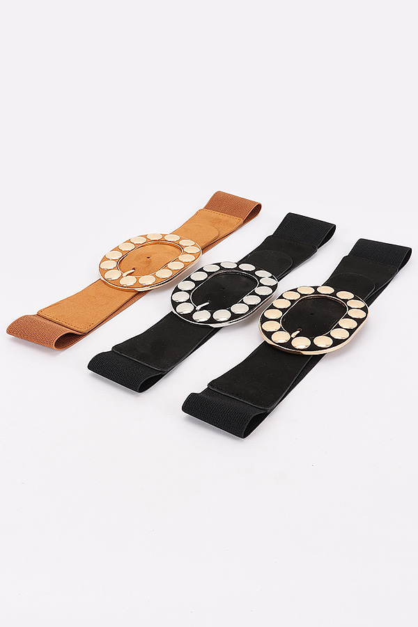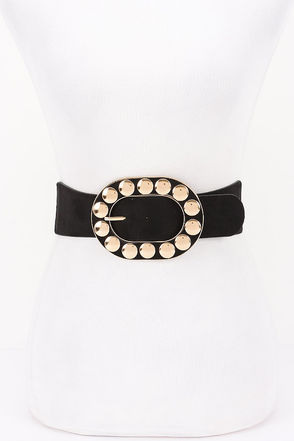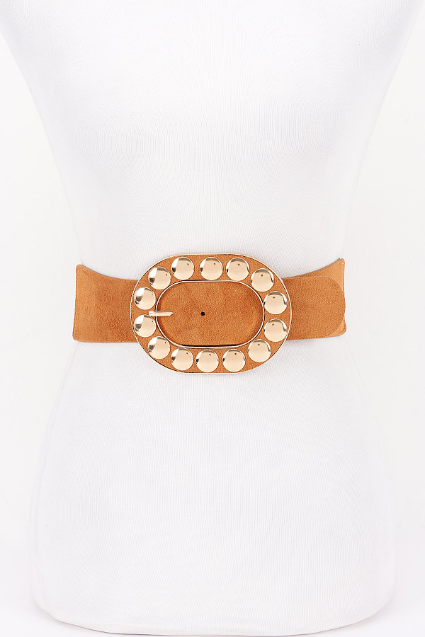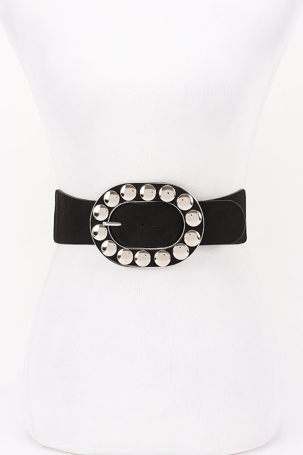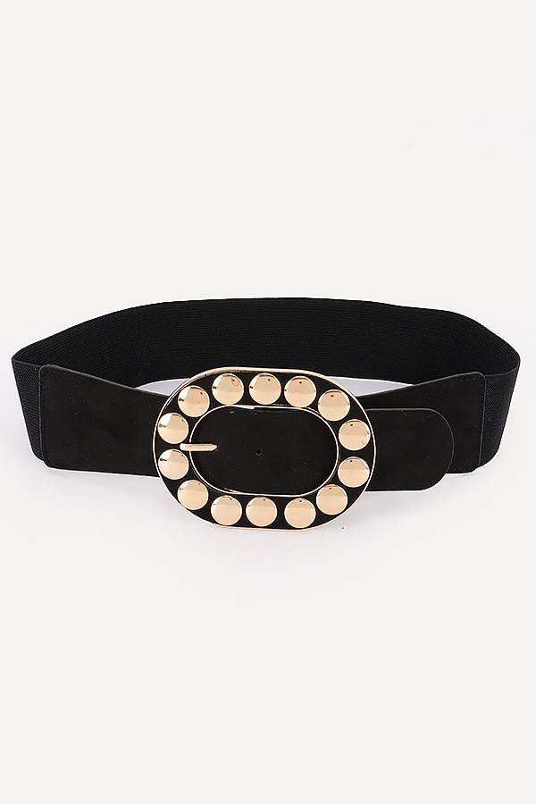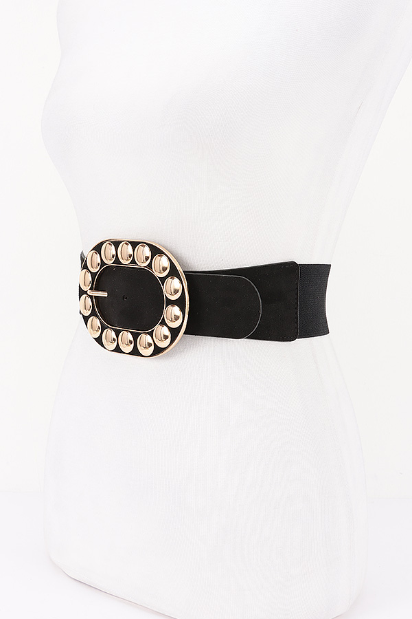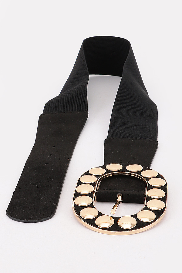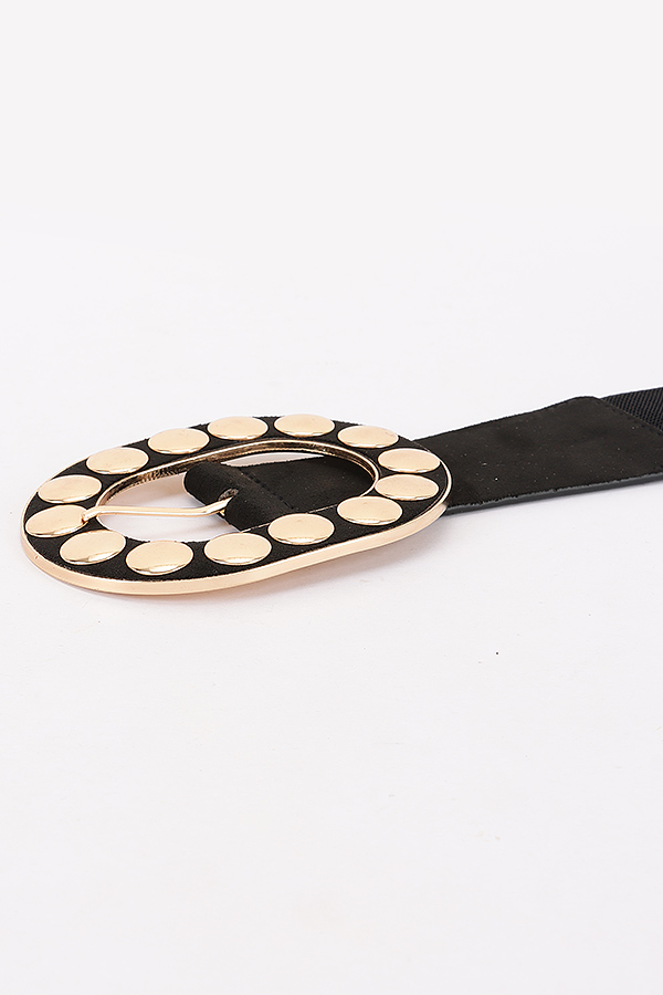 - * Metal Studded Buckle Faux Suede Elastic Belt