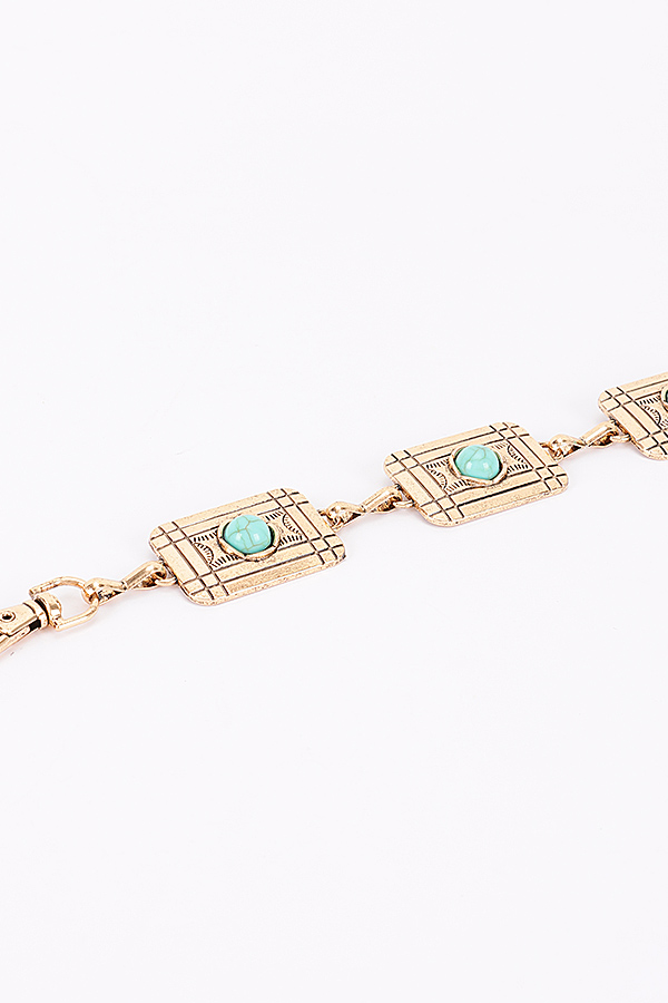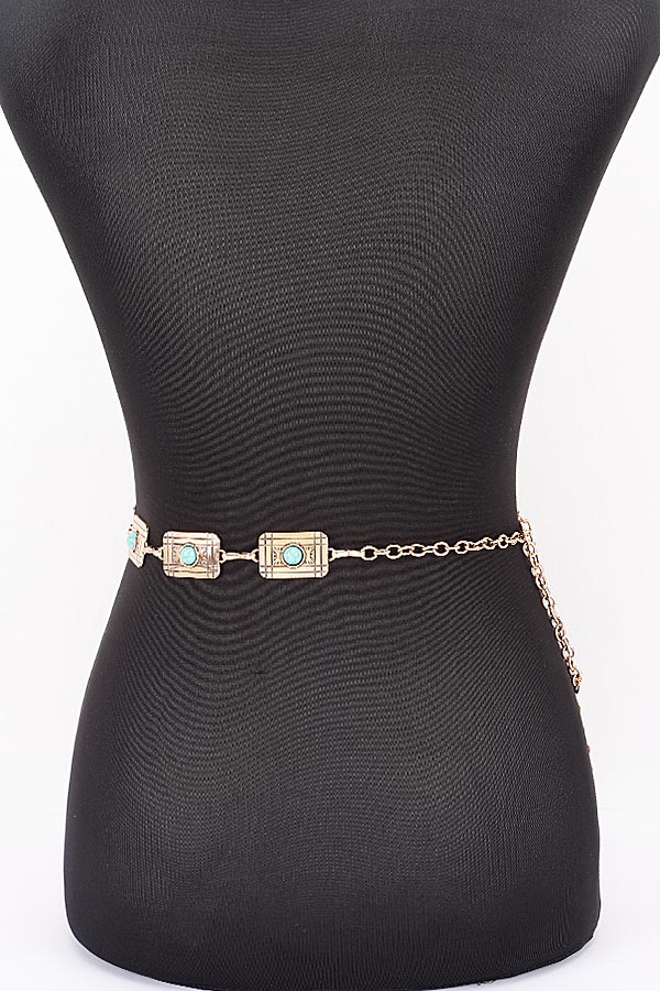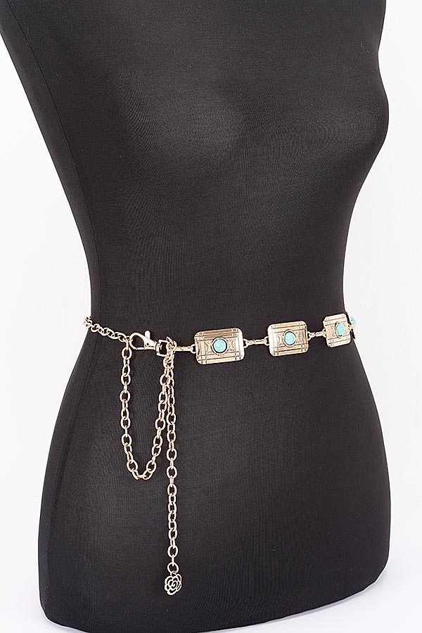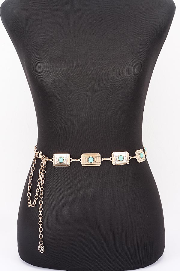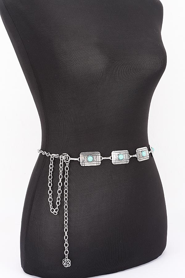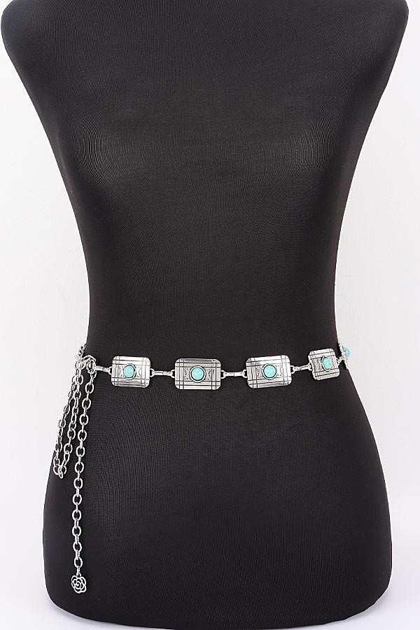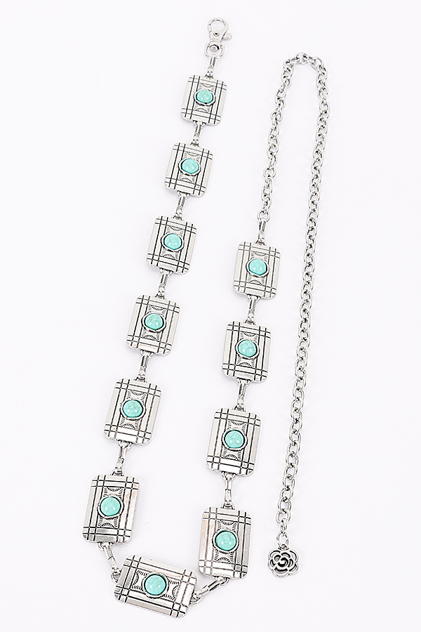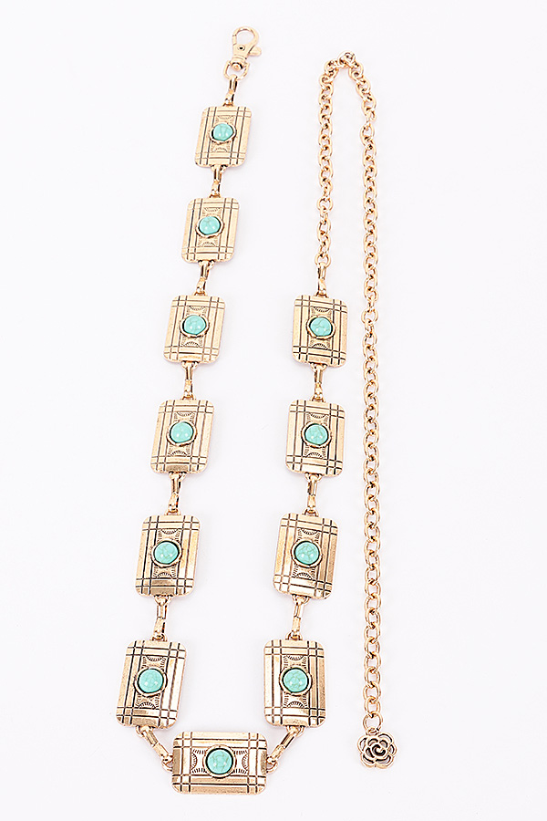 • * Geometric Engraved Turquoise Accent Adjustable Chain Belt