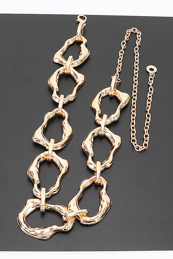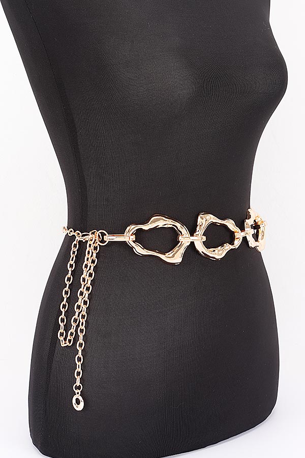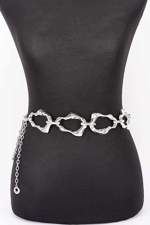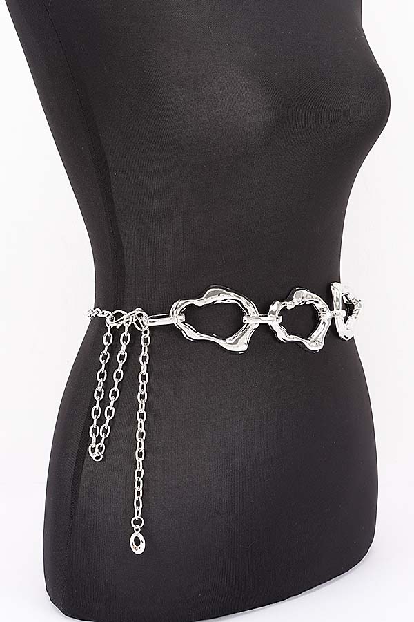 - * This Irregular Link Chain Belt from H&D Accessories features a unique design of connected irregular-shaped links, showcasing a bold and artistic silhouette. It’s equipped with an adjustable thin chain on the side—this not only allows flexible fitting for different waist sizes but also adds a casual, dynamic decorative touch. The belt serves both as a waist-cinching piece to optimize body proportions and a stylish accessory to elevate outfit details, fitting various daily styling needs.Pair with a simple, streamlined dress—fasten the belt around the waist to define the silhouette and add a distinctive design highlight. This combination balances elegance with artistic details, suitable for romantic dates or afternoon tea gatherings.