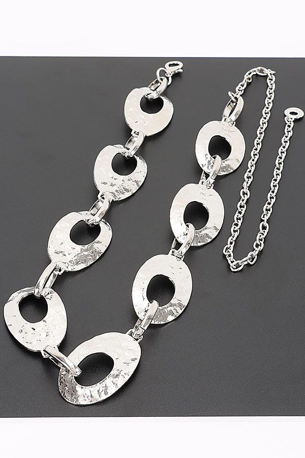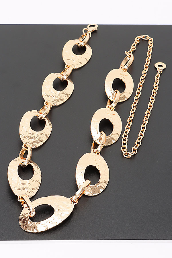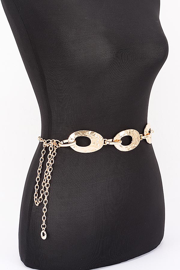 - * The Hammered Oval Link Waist Chain Belt from H&D Accessories features a series of open oval panels with a textured, hand-hammered finish that catches light with every movement, creating subtle yet eye-catching dimension. Its adjustable chain ensures a comfortable, tailored fit, making it perfect for cinching the waist of a flowy midi dress for a brunch date, adding a bold accent to a sleek jumpsuit for an evening out, or elevating a simple tunic and leggings ensemble for a casual weekend look. Whether you’re aiming for a modern minimalist vibe or a bohemian-inspired aesthetic, this versatile waist chain belt seamlessly blends artisanal texture with effortless style to become a go-to accessory for any occasion.