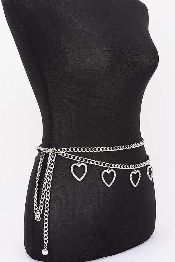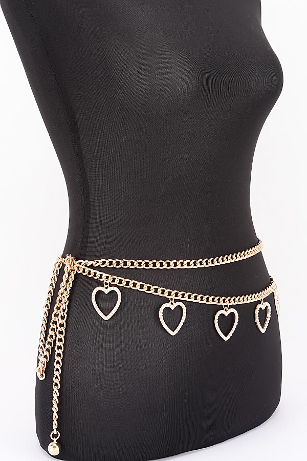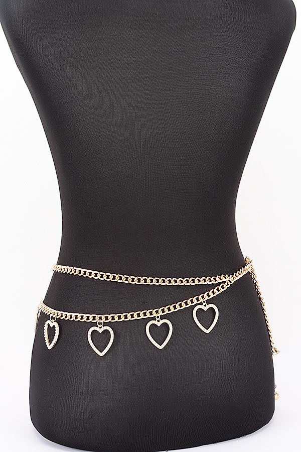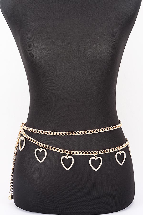 - * Layered Heart Charm Adjustable Waist Chain Belt