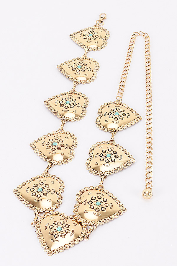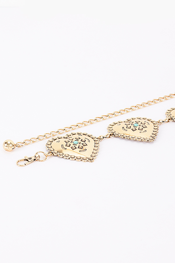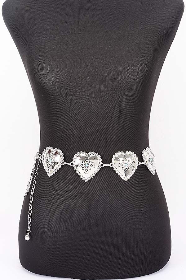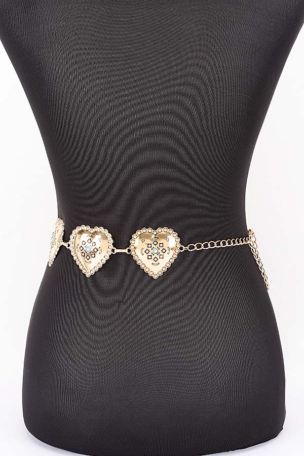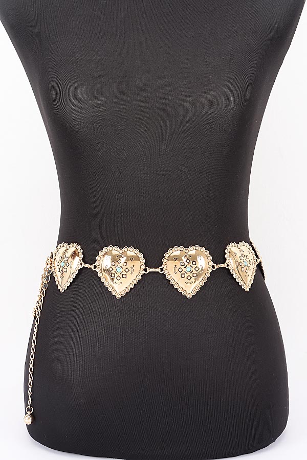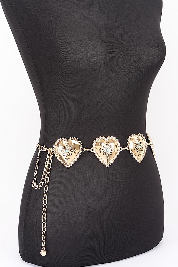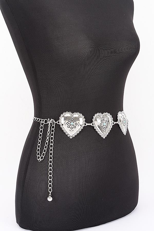 - * Vintage Engraved Heart Link Adjustable Chain Belt