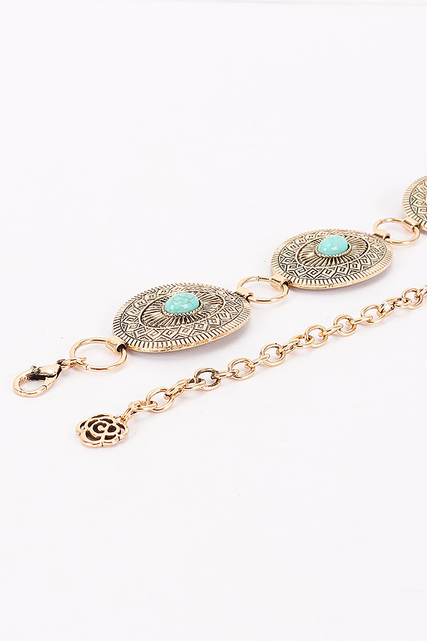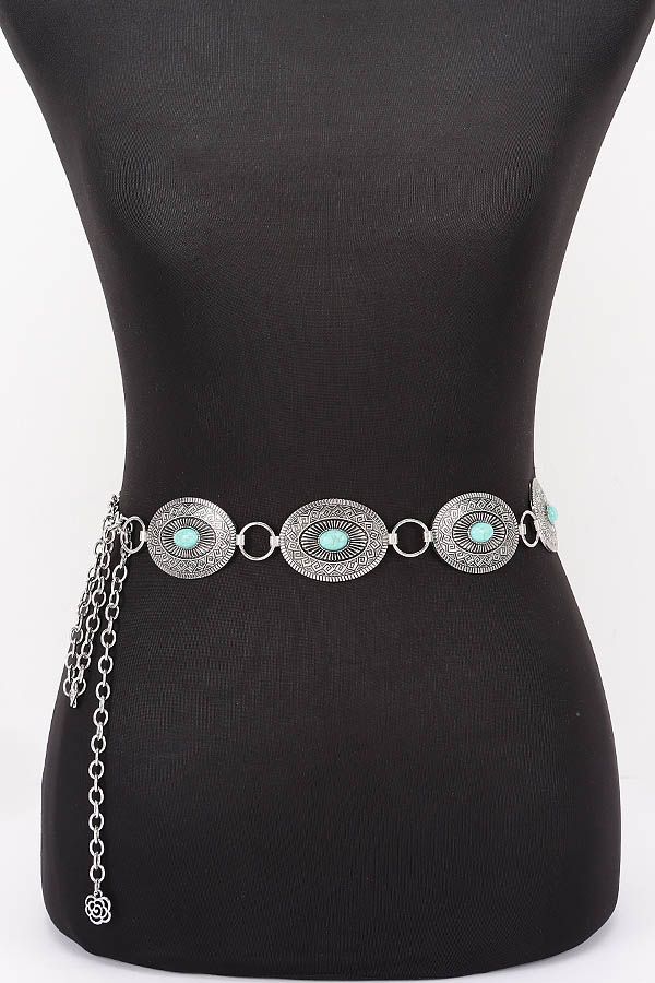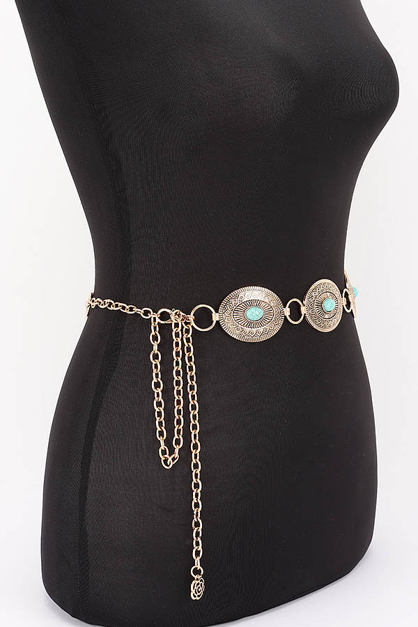 - * This is a Vintage Chain Belt from H&D Accessories, featuring decorative embossed medallions, accented details, and a chain extension for adjustable fit. Its retro-inspired design adds a distinctive touch to outfits. Perfect for styling high-waisted skirts or denim, it elevates both casual and bohemian looks. Stylish and versatile, it’s a charming accessory for enhancing everyday ensembles.