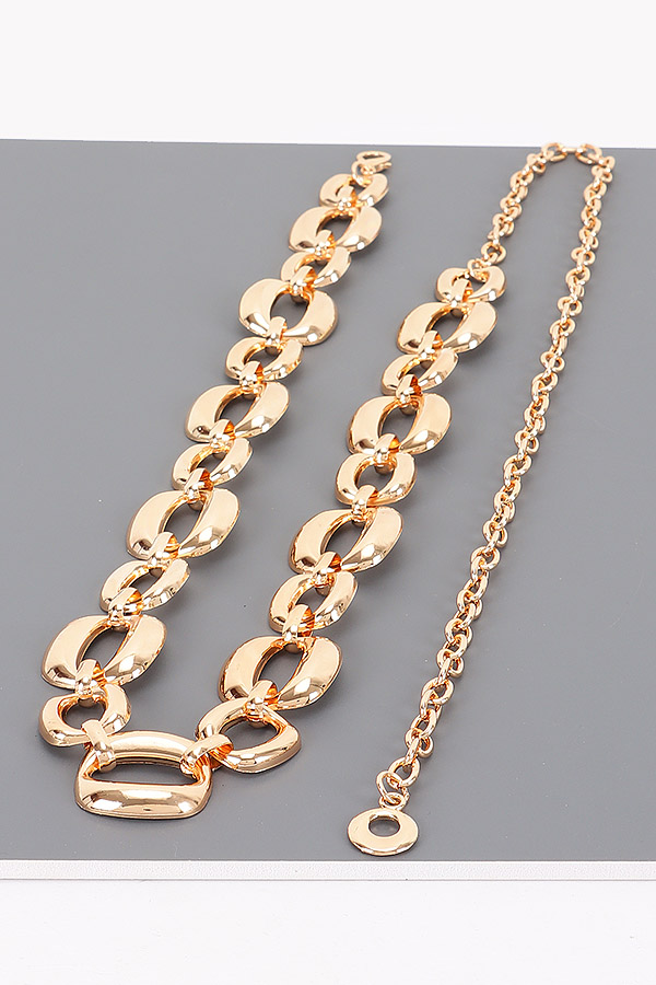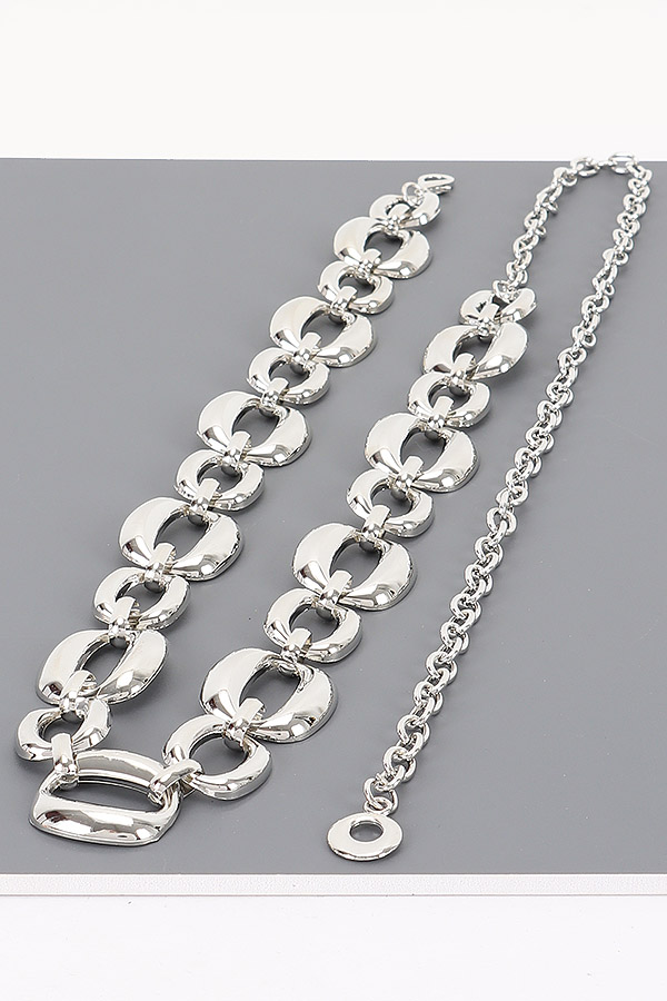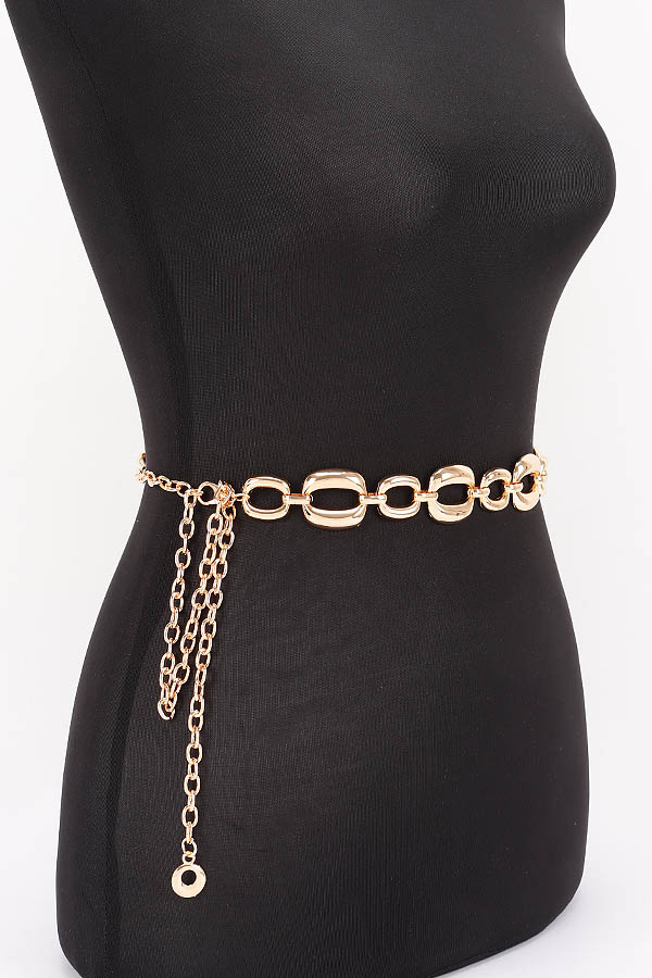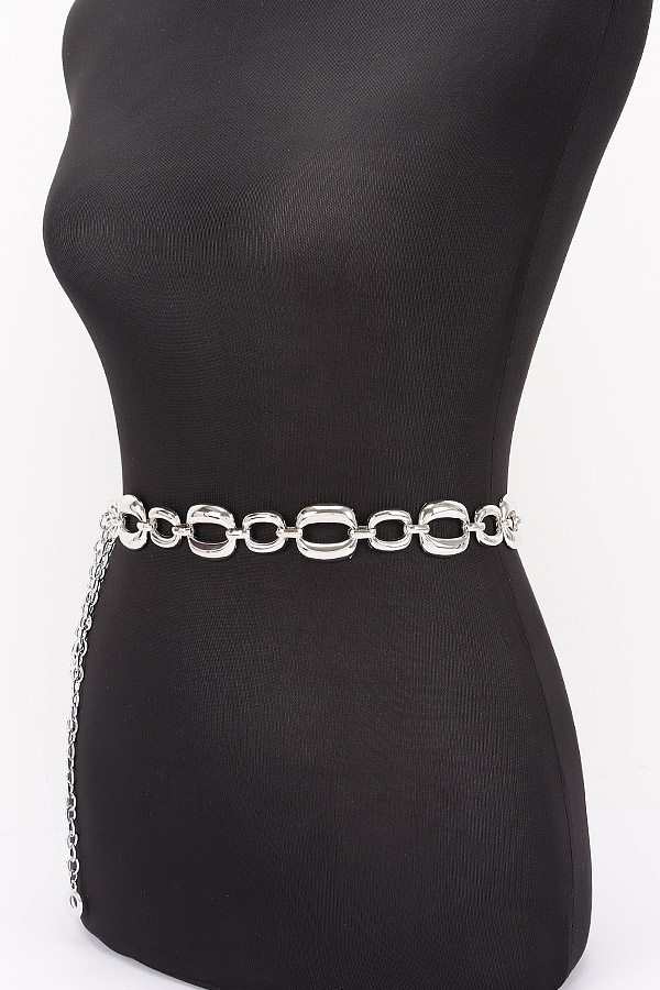 - * This Chain Belt from H&D Accessories features a design of linked oval metal chains, paired with a dangling chain detail for adjustability. It has a sleek, modern appearance, giving off a versatile and stylish vibe.Ideal for cinching the waist of dresses, blouses, or denim outfits during work commutes, shopping trips, or casual meetups, adding a subtle polished touch.