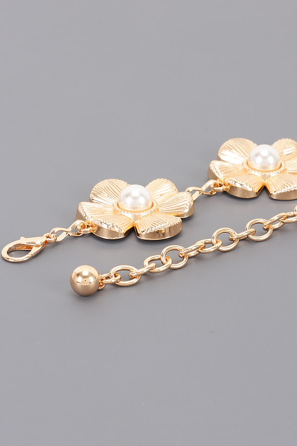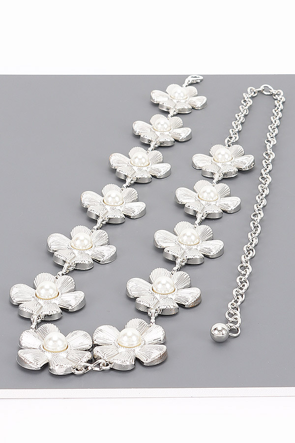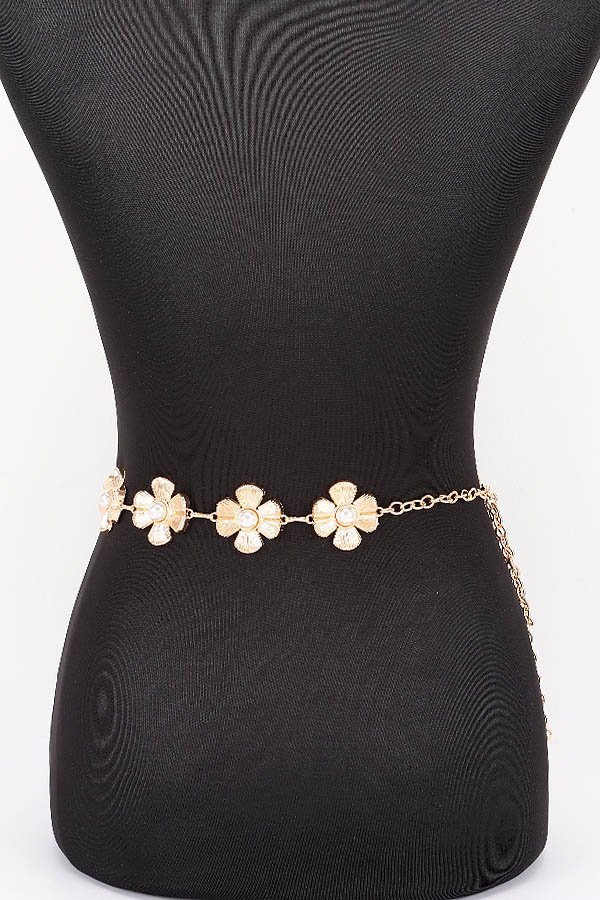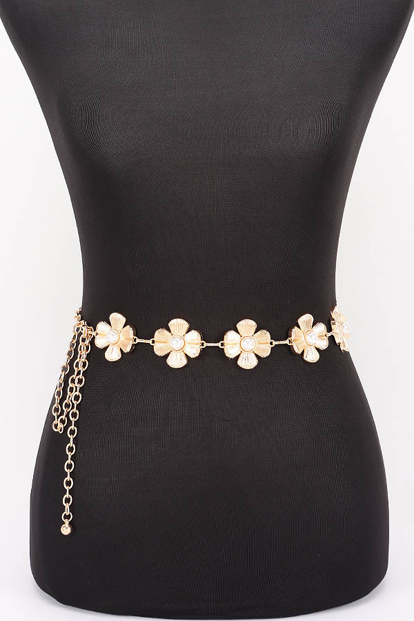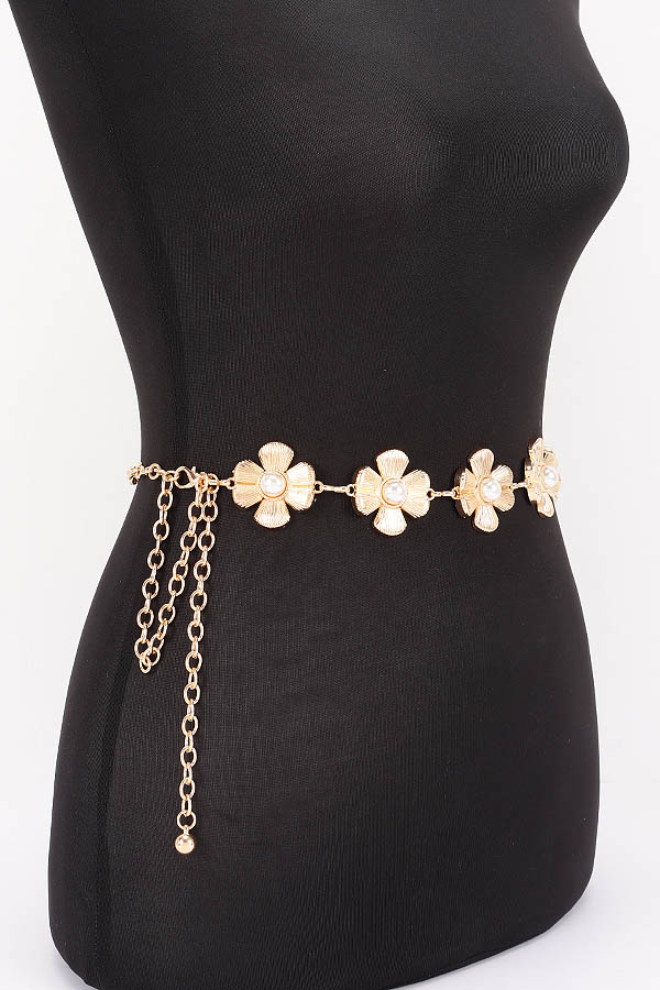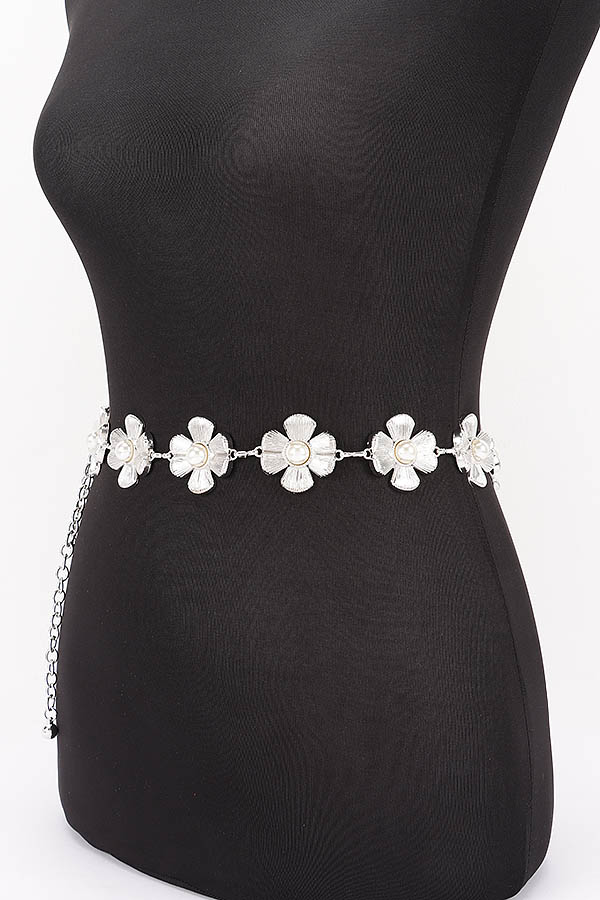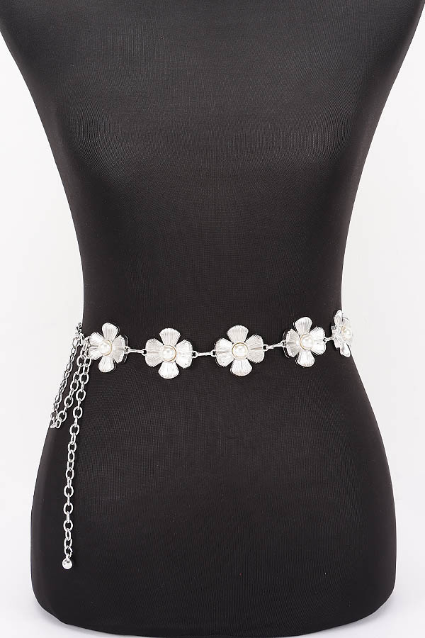 - * This is a Chain Belt from H&D Accessories, designed with decorative flower-shaped accents and pearl details, plus a chain extension for adjustable fitting. Its delicate, charming design adds a soft touch to outfits. Perfect for styling dresses or high-waisted bottoms, it elevates both casual and feminine looks. Stylish and versatile, it’s a lovely accessory for enhancing everyday ensembles.