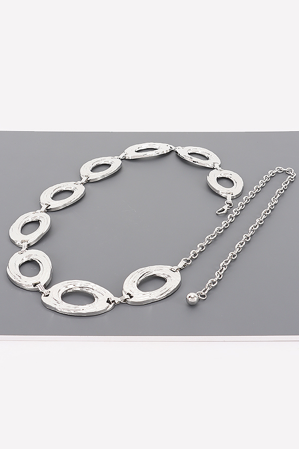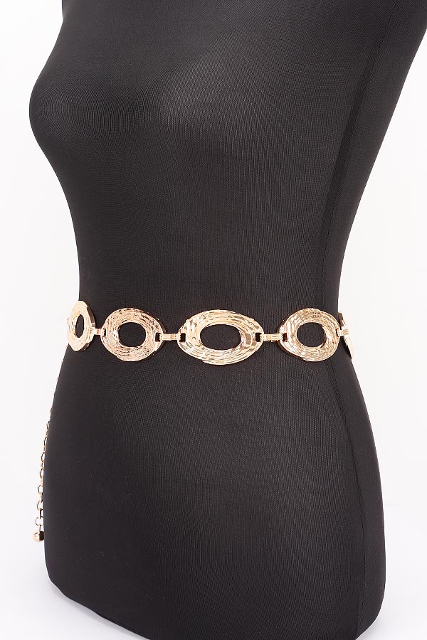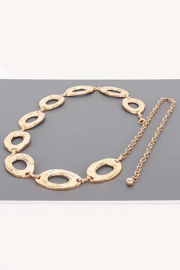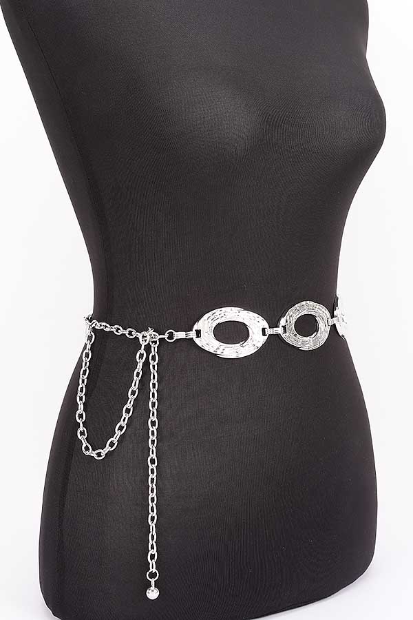 - * This Chain Belt from H&D Accessories features a distinctive design with textured oval links and a chain extension with a spherical detail, exuding a sense of modern sophistication. It’s perfect for cinching a flowy maxi dress at an outdoor summer gala, or adding a chic touch to a tailored blazer and trousers for a bold office look. The belt’s unique metal construction makes it a statement piece, ideal for fashion enthusiasts who want to elevate their outfits with a blend of contemporary style and subtle artistry, whether they’re attending a social event or simply enhancing their daily ensemble.