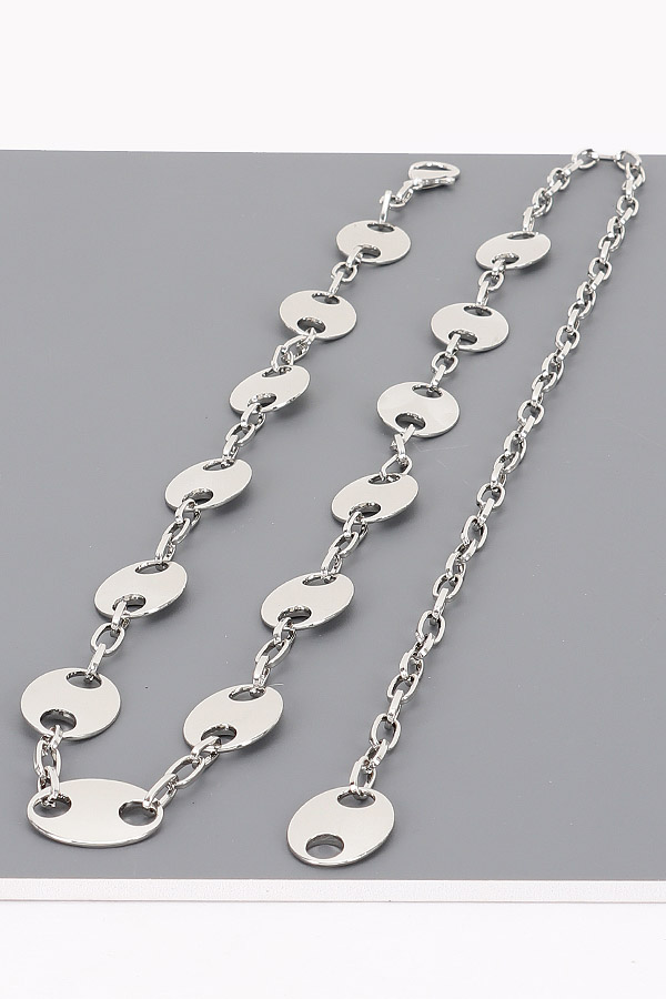 - * This is a Chain Belt from H&D Accessories, made up of sleek, oval-shaped decorative links: each oval features smooth, rounded edges with dual cutouts that let the connecting chain pass through, creating a streamlined, cohesive look. It includes an adjustable chain extension for a custom fit. Perfect for adding a minimalist-chic touch to a flowy dress for weekend brunch, cinching a tailored blouse for a casual outing, or elevating an evening ensemble—each oval decoration balances subtle style with waist-defining functionality.