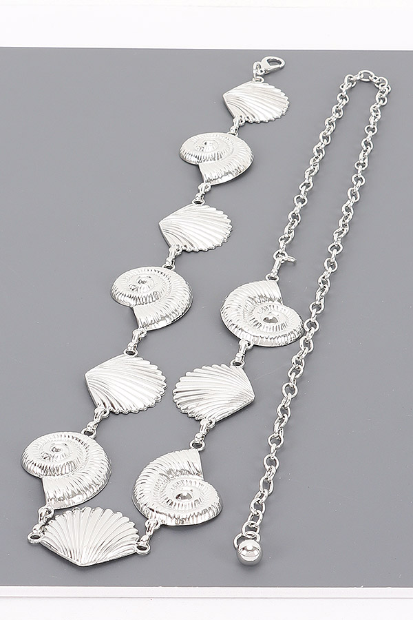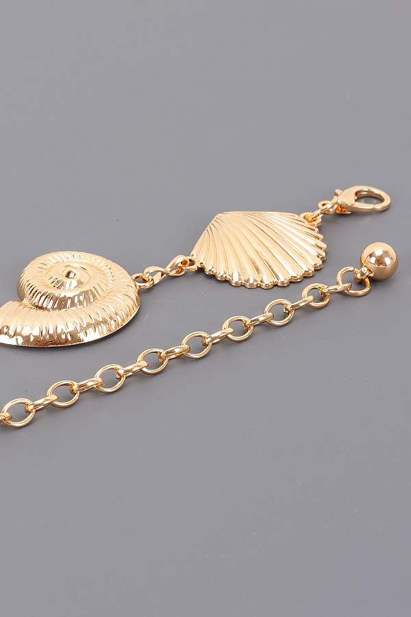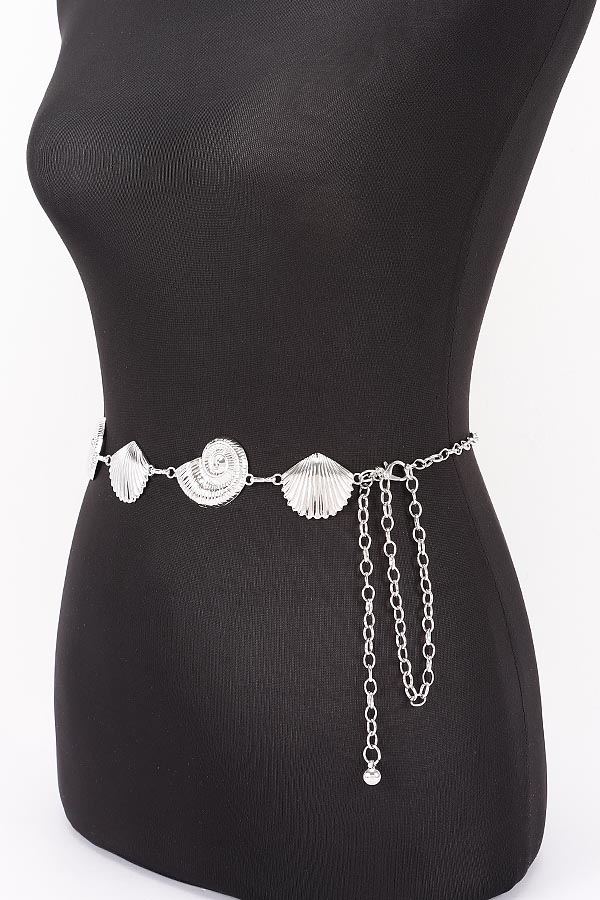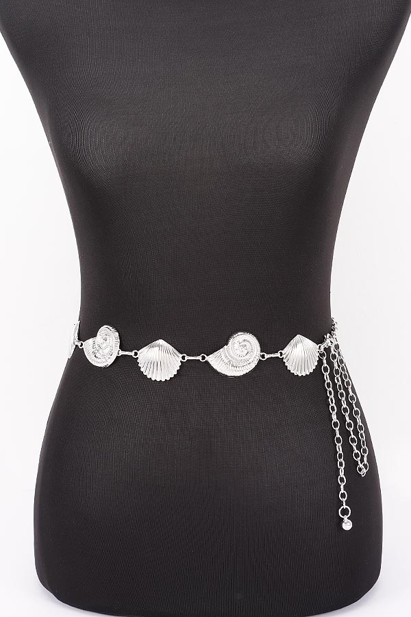 - * This Chain Belt from H&D Accessories features a design of linked shell and seashell-shaped metal accents, paired with a dangling chain for adjustability. It has a playful, coastal-inspired appearance, giving off a charming and thematic vibe.Ideal for cinching flowy dresses, beach cover-ups, or casual tops during coastal trips, pool parties, or outdoor gatherings, adding a whimsical seaside touch.