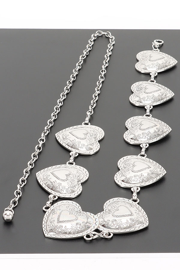 - * This is a Vintage Chain Belt from H&D Accessories, featuring intricately patterned heart-shaped pendants and an adjustable chain extension. Its retro, delicate design adds a romantic touch to outfits. Perfect for styling flowy dresses or high-waisted bottoms, it elevates nostalgic, feminine looks. Stylish and charming, it’s a lovely accessory for enhancing everyday ensembles.