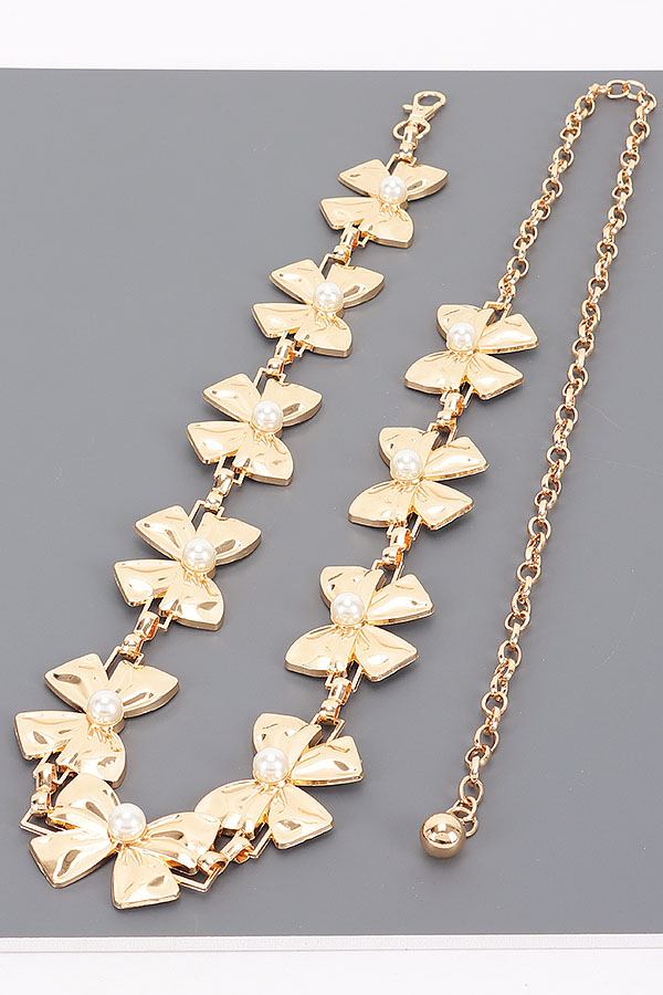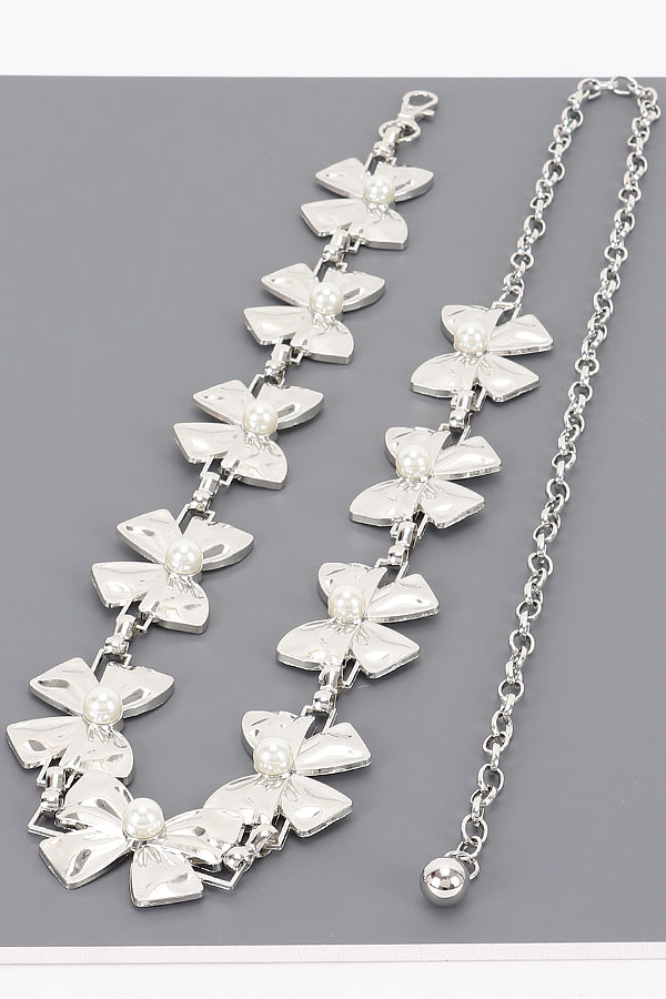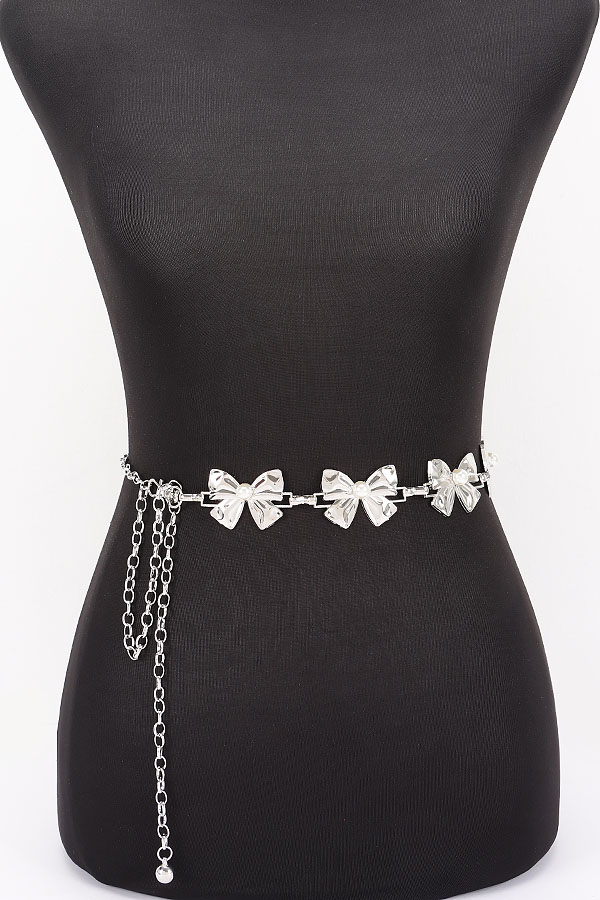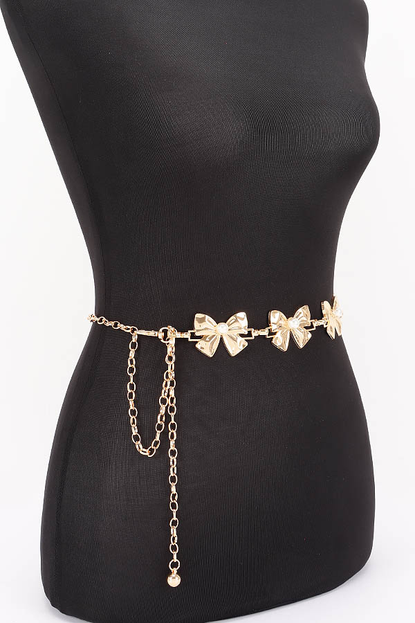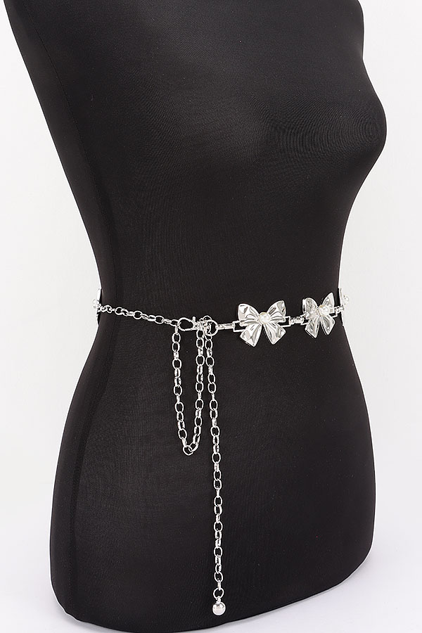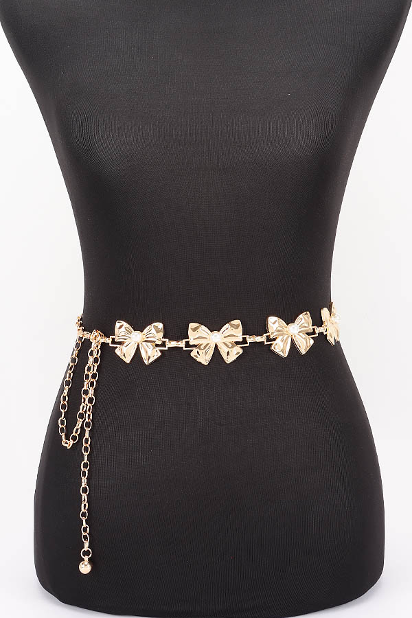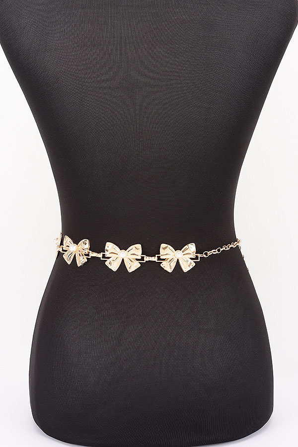 - * This is a Vintage Chain Belt from H&D Accessories, featuring bow-shaped pendants with pearl details and an adjustable chain extension. Its retro, delicate design adds a soft, charming touch to outfits. Perfect for styling feminine dresses or high-waisted skirts, it elevates nostalgic, romantic looks. Stylish and versatile, it’s a lovely accessory for enhancing everyday ensembles.