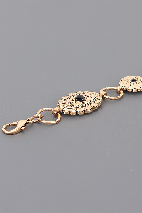 • * This is a Vintage Chain Belt from H&D Accessories, featuring two types of decorative links: one is an ornate, scalloped frame with a central accent and intricate border patterns, the other is a smaller, detailed floral-style medallion. These alternate with sleek open loops, and the belt includes an adjustable chain extension with a small spherical accent. It’s perfect for adding a retro, elegant touch to a midi dress for a brunch gathering, cinching a tailored blouse for a casual outing, or elevating evening wear—each decorative element blends intricate charm with waist-defining functionality.