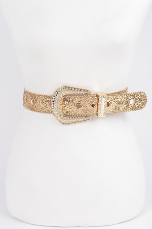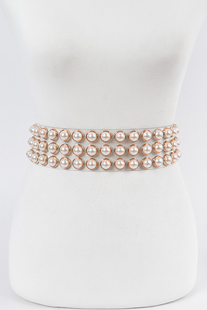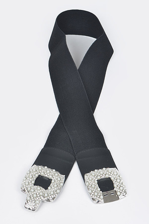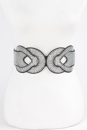 Metallic Stretch Plus Size Belt w/Pearl Metal Bucklt