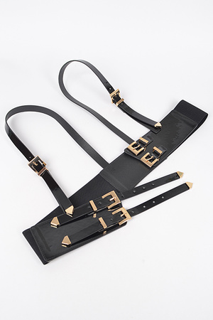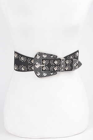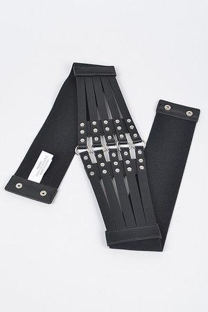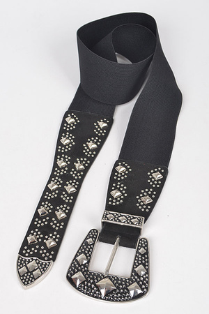 Faux Leather Metal Studded Plus Size Elastic Belt