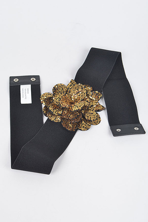 Faux Straw Metal Flower Stretch Plus Size Belt