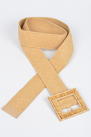 Faux Straw Metal Stone Buckle Stretch Plus Size Belt
