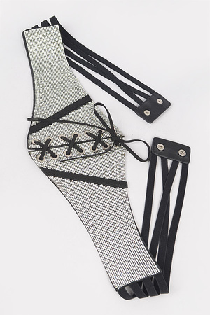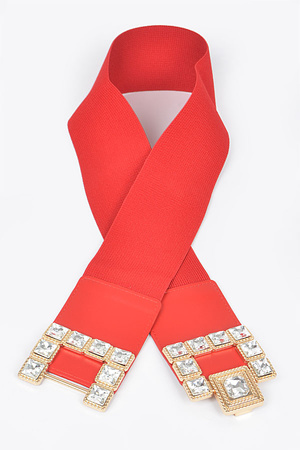 Multi Stone Metallic Straw Stretch Plus Size Belt