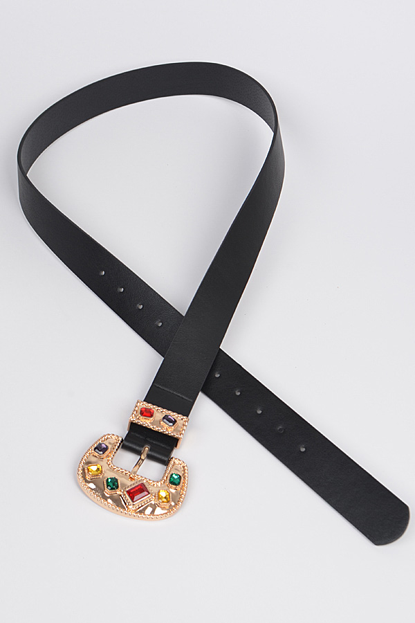 - * Jeweled Buckle Faux Leather Plus Size Belt.
