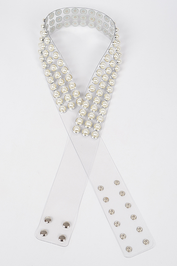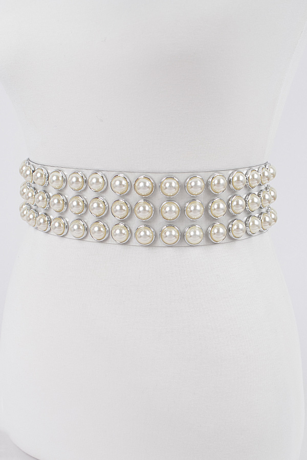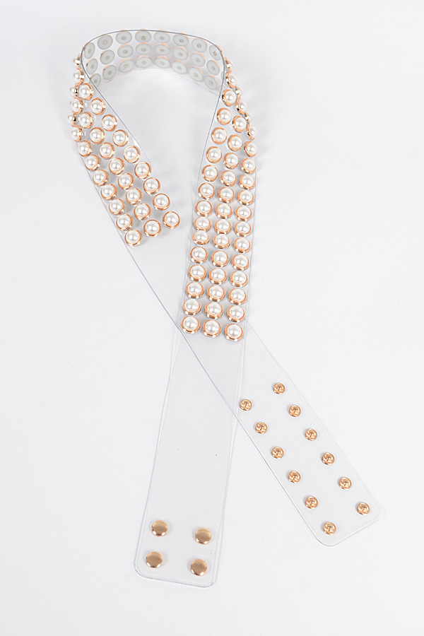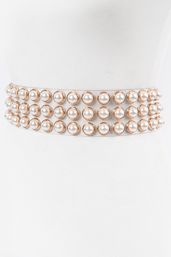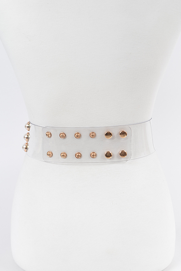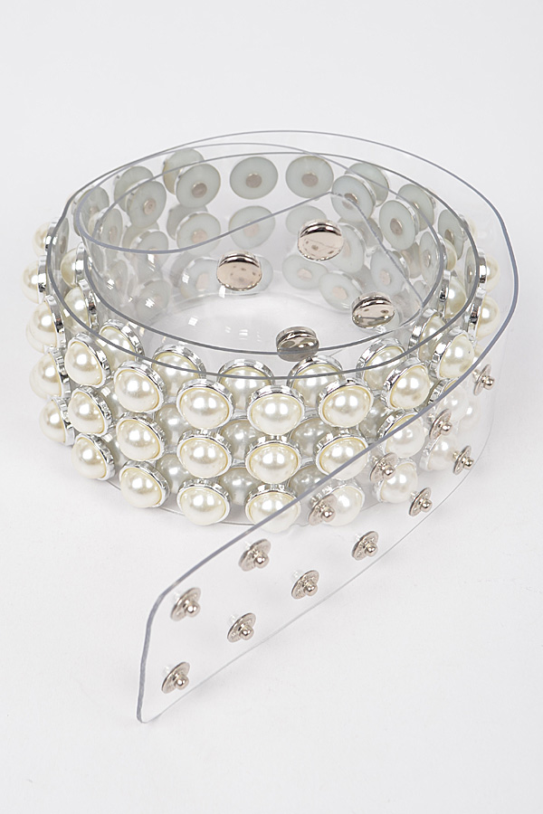 - * Full Pearl Studded Plus Size Clear Waist Belt
