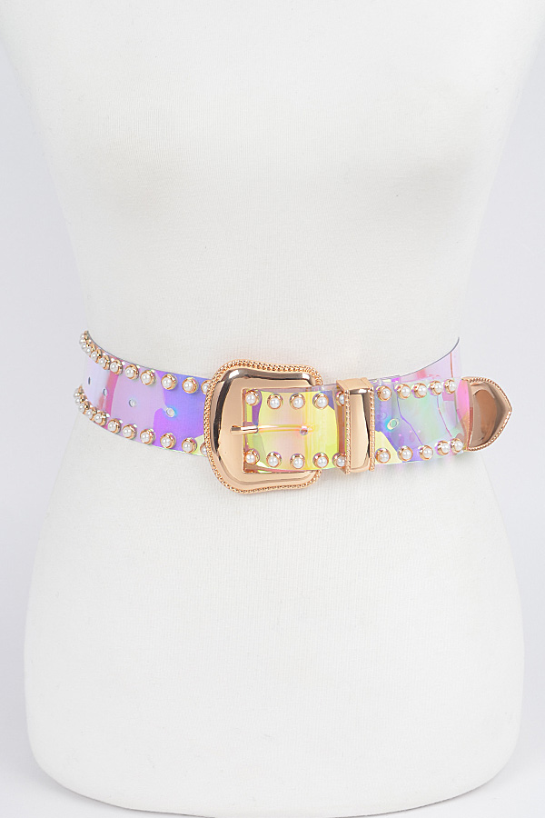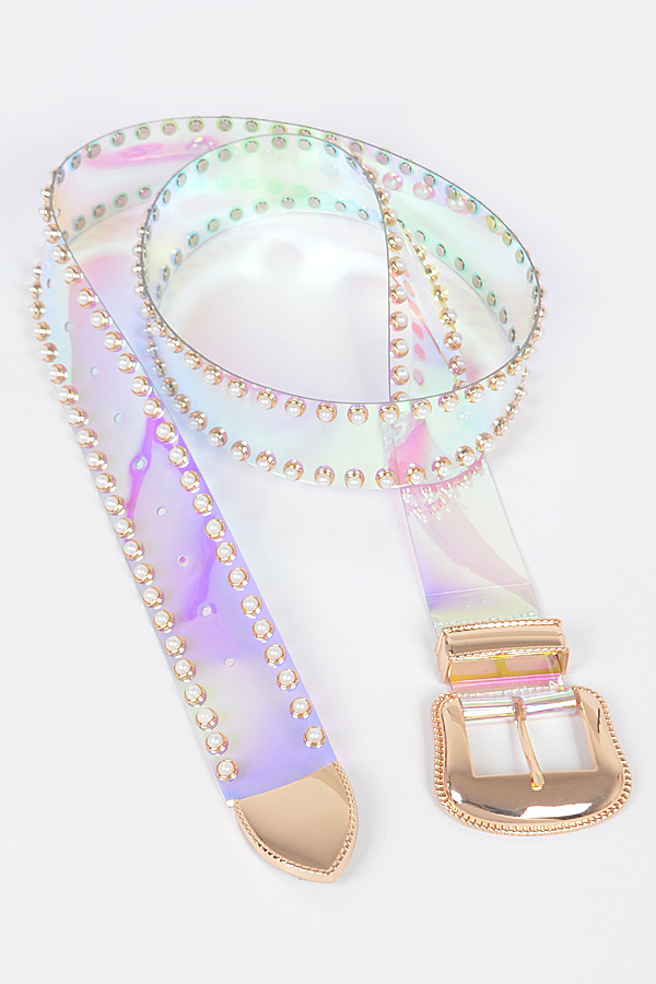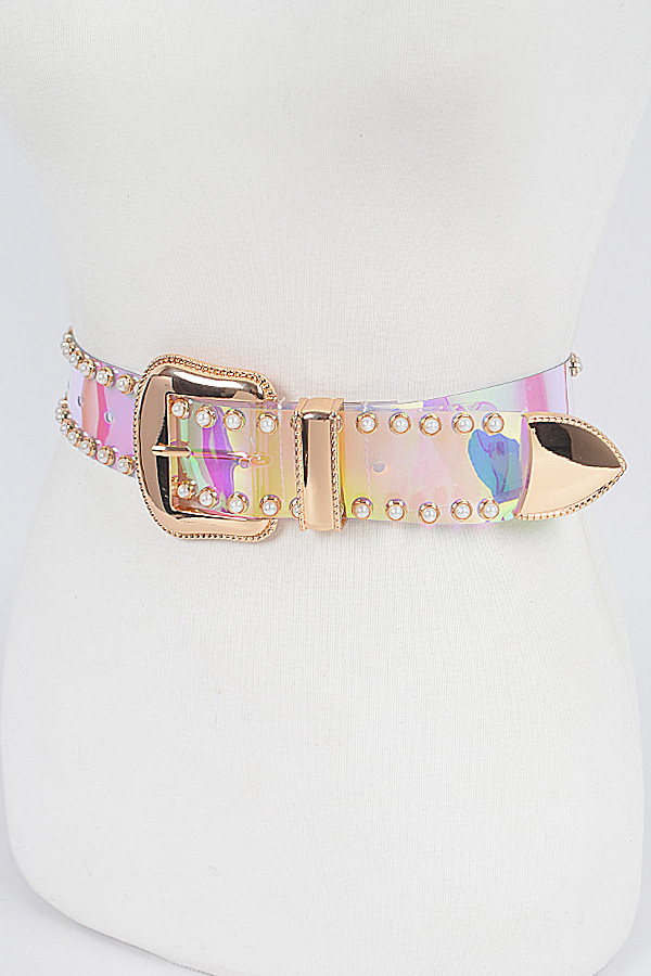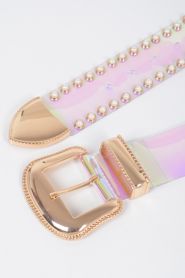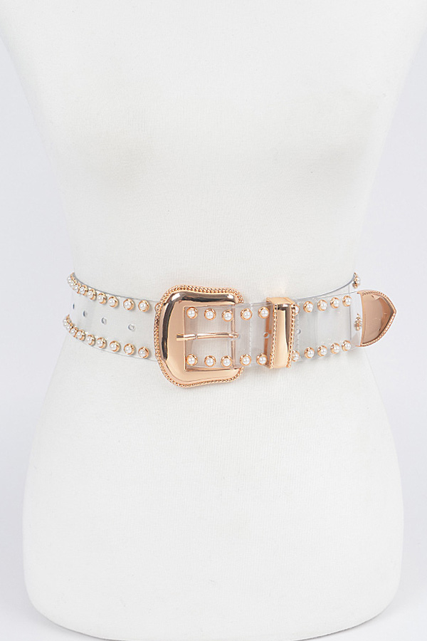 - * Faux Pearl Studded Transparent Plus Size Belt