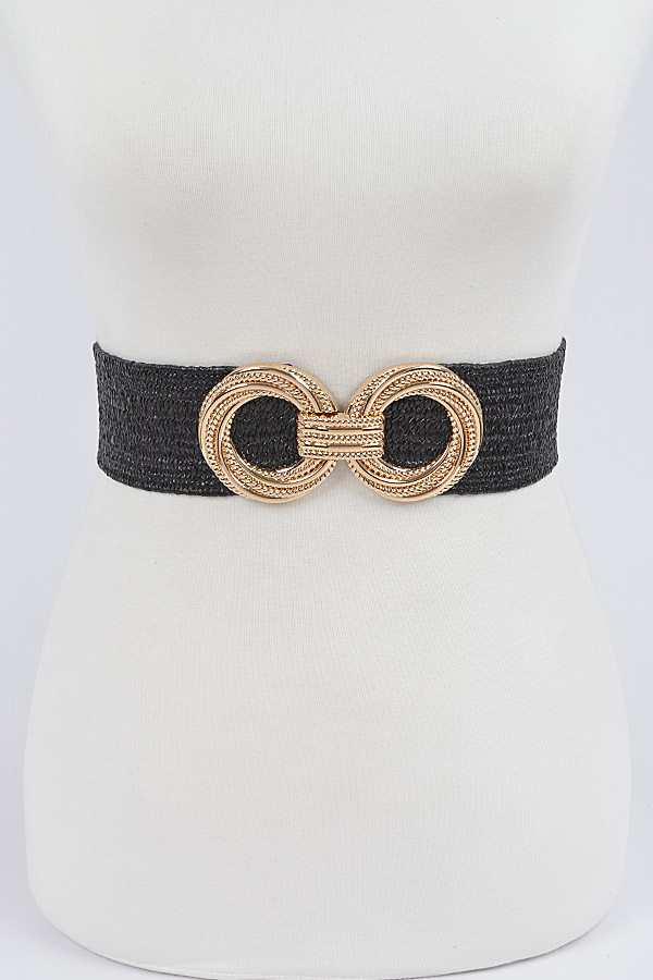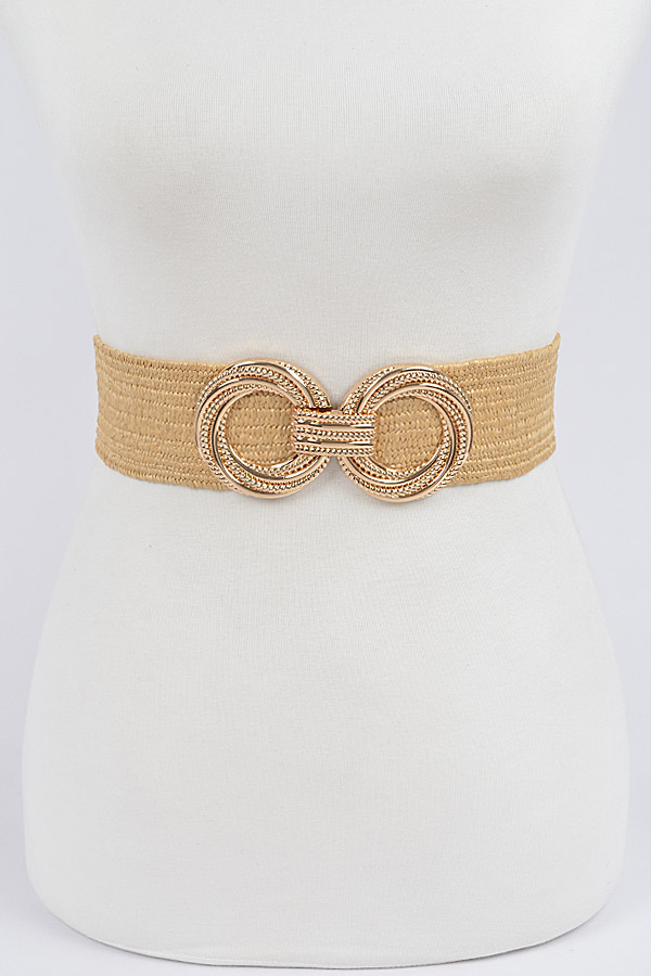 - * Metal OO Buckle Plus Size Stretch Straw Belt