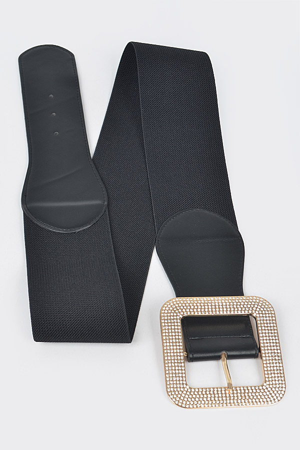 - * Rhinestone Square Buckle Plus Size Elastic Belt