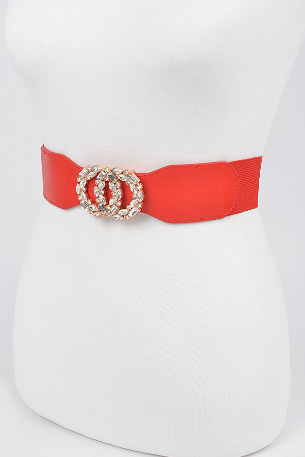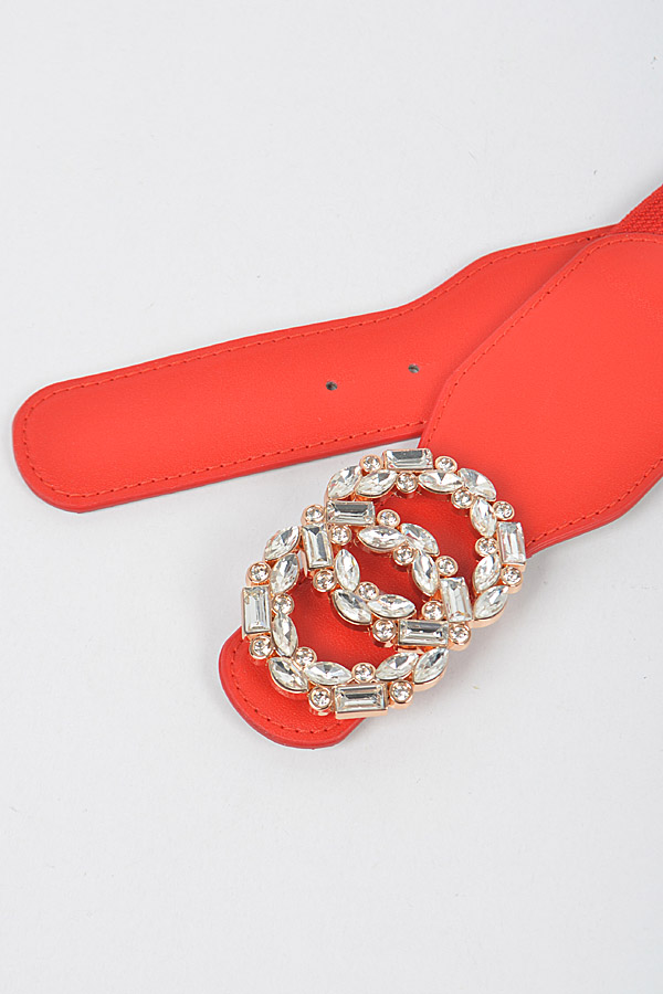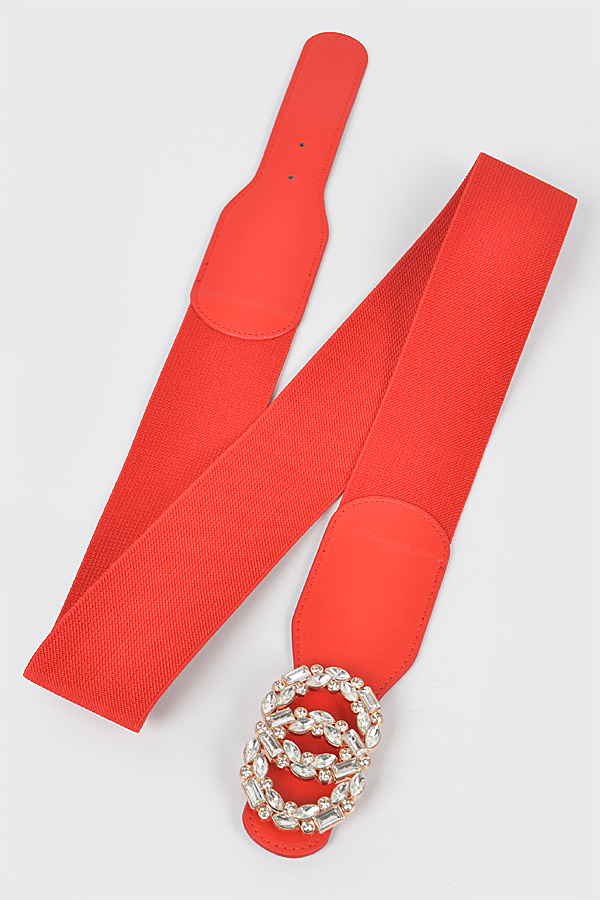 - * OO Rhinestone Buckle Plus Size Elastic Belt