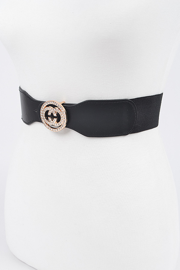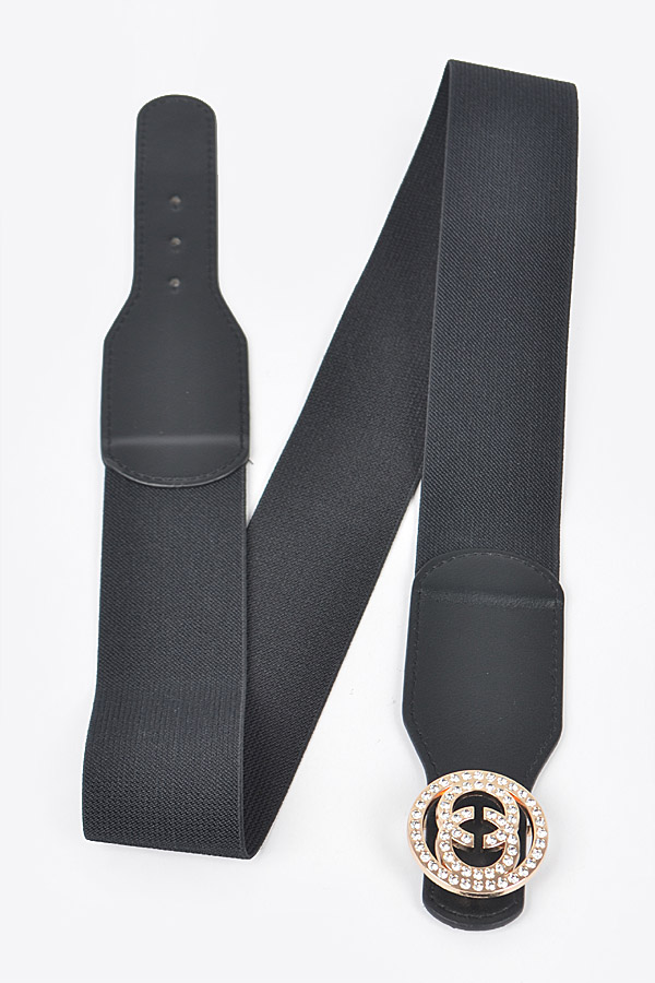 - * Plus Size Rhinestone Buckle Elastic Belt