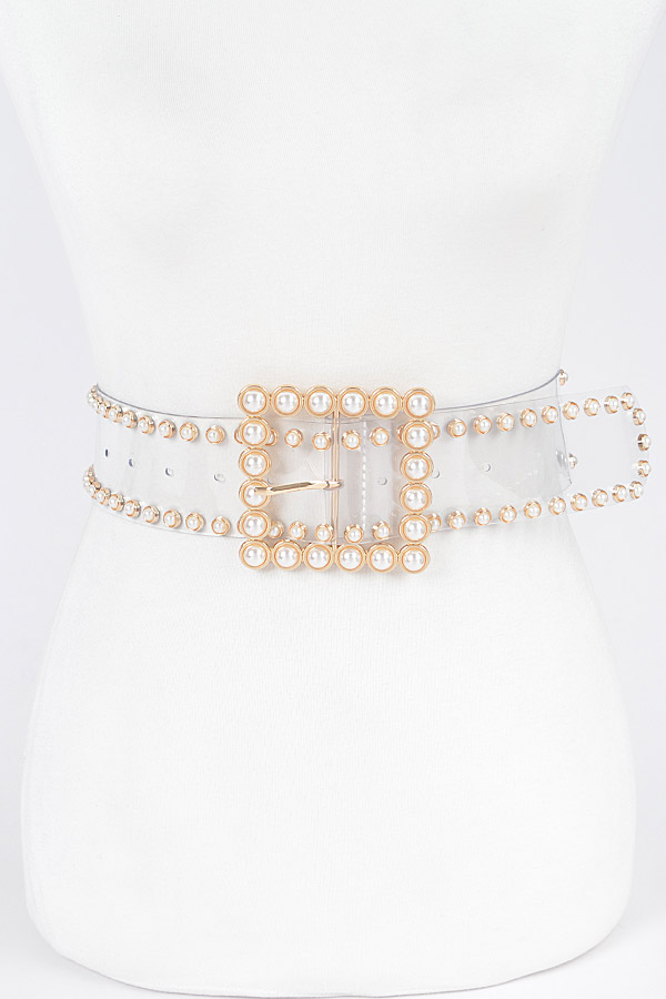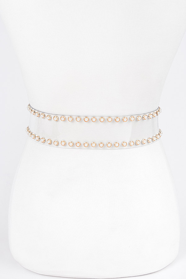 - * Rhinestone Buckle Plus Size Clear Belt W/Stones