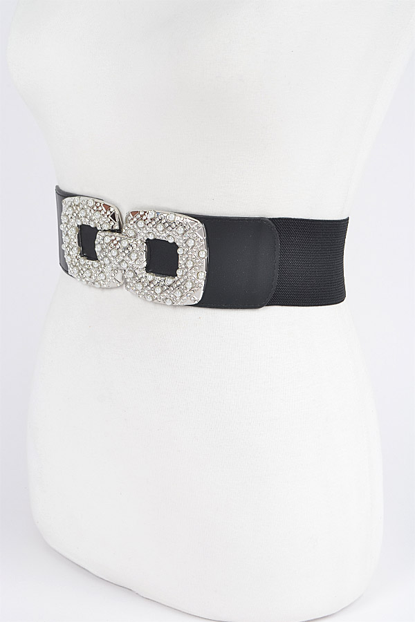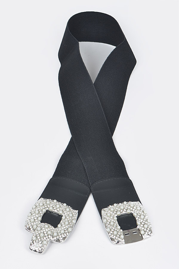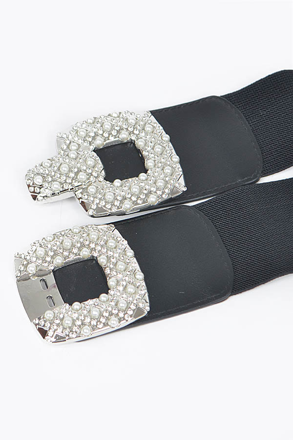 - * Rhinestone Pearl Buckle Plus Size Elastic Belt
