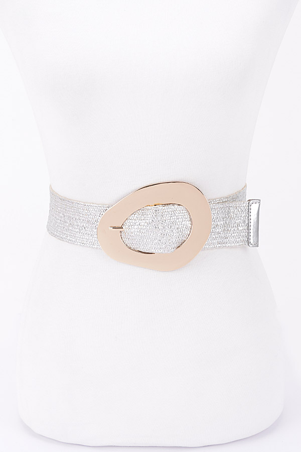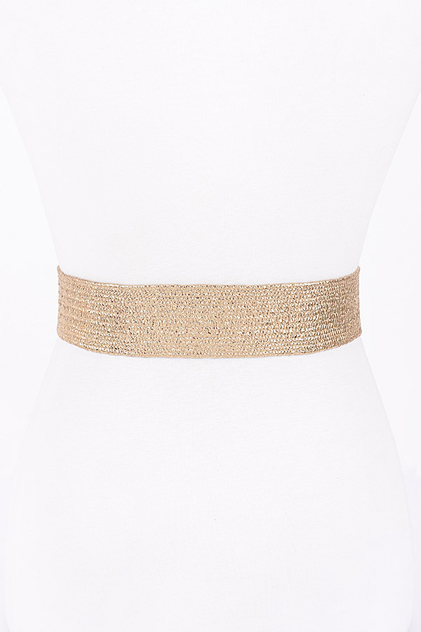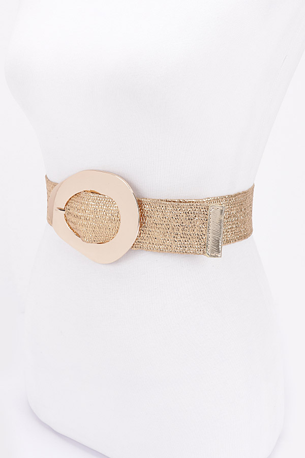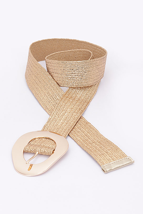 - * Vintage Metal Buckle Metallic Stretch Straw Plus Size Belt