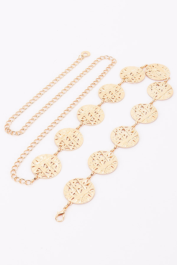 - * This is a Vintage Metal Chain Plus Size Belt from H&D Accessories. It is crafted with a series of intricately designed metal discs linked together, exuding a retro charm. A dangling chain detail adds an extra touch of elegance and movement. This belt is perfect for cinching the waist of a flowy bohemian dress when you're heading to a music festival, or for adding a vintage - inspired accent to a pair of high - waisted jeans and a casual top for a day out with friends.