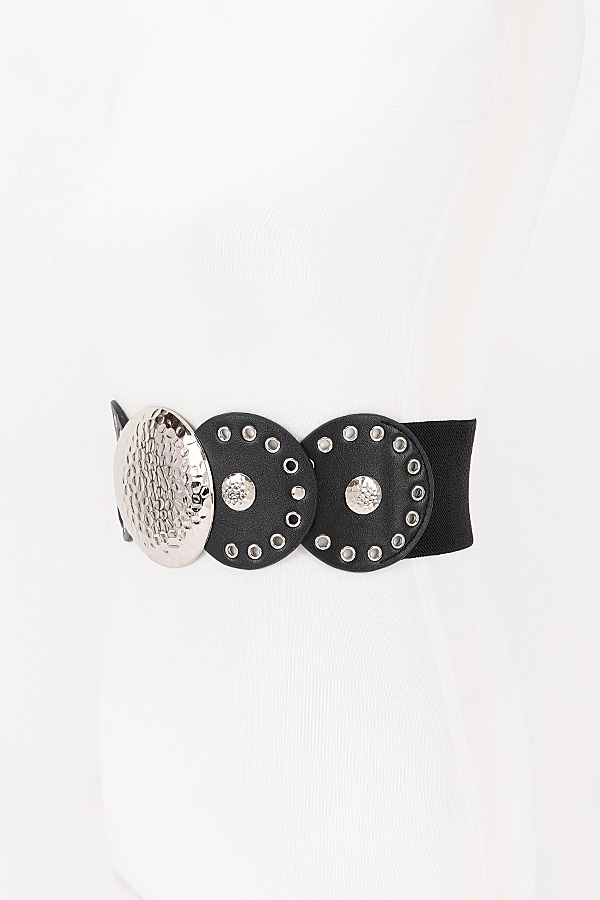 - * This Vintage Disc Elastic Plus Size Belt from H&D Accessories features a stretch elastic band with vintage-inspired disc decorations, offering a comfortable fit and flexible sizing for various body shapes. The classic decorative elements bring a retro and elegant texture, making it a practical and stylish accessory to define waistline and enhance outfit details.