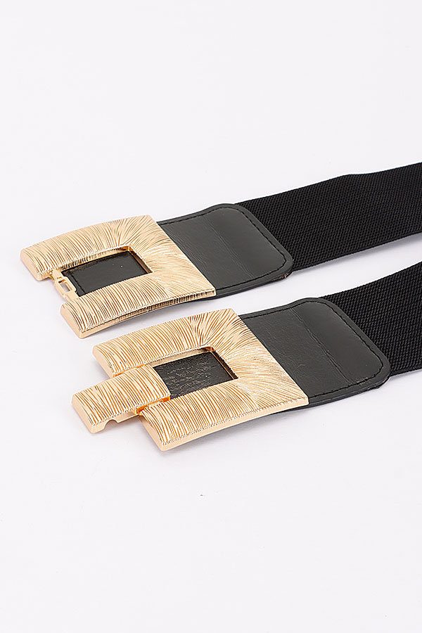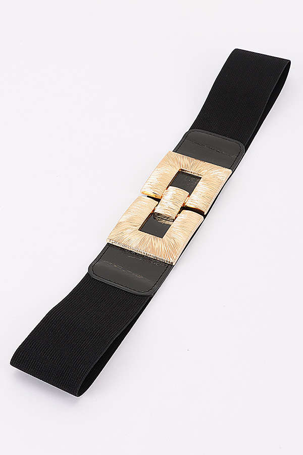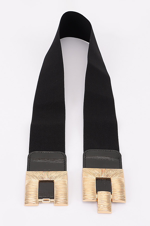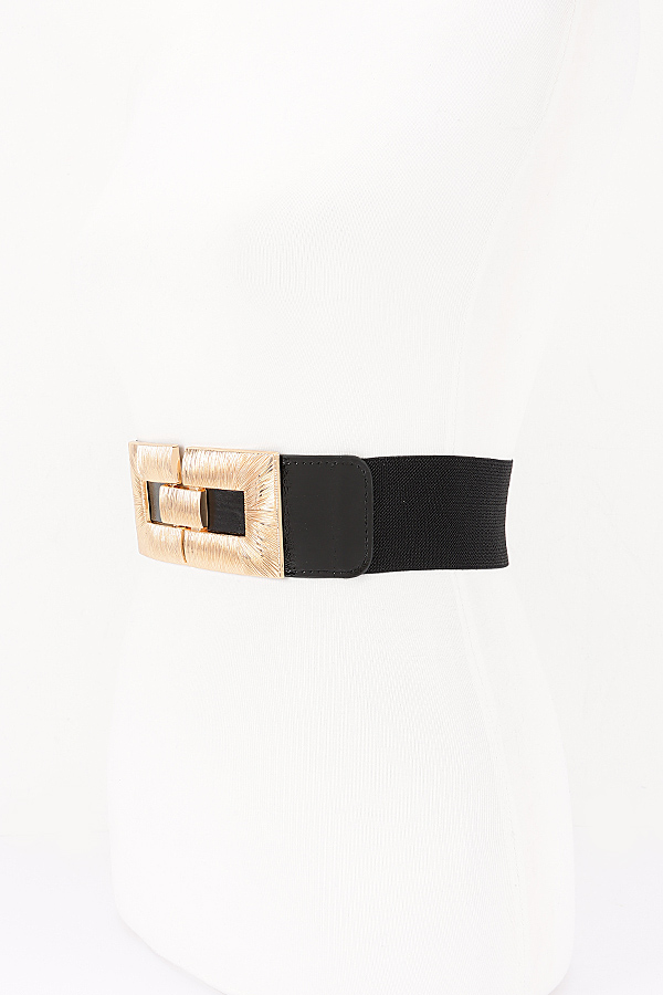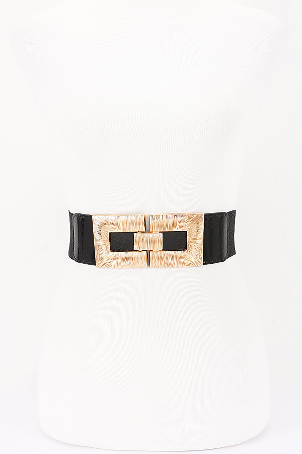 - * This Plus Size Belt from H&D Accessories features a wide, stretchy elastic body that delivers a flexible, comfortable fit, paired with smooth faux-leather end panels for a polished, structured finish. Its striking metallic buckle set is adorned with intricate radial and linear textured detailing, forming a bold interlocking rectangular design that adds a luxurious, eye-catching focal point to the piece. This statement-making belt is perfect for defining the waistline of flowy dresses, oversized blouses, or tailored coats, effortlessly elevating everyday and evening ensembles with sophisticated charm.