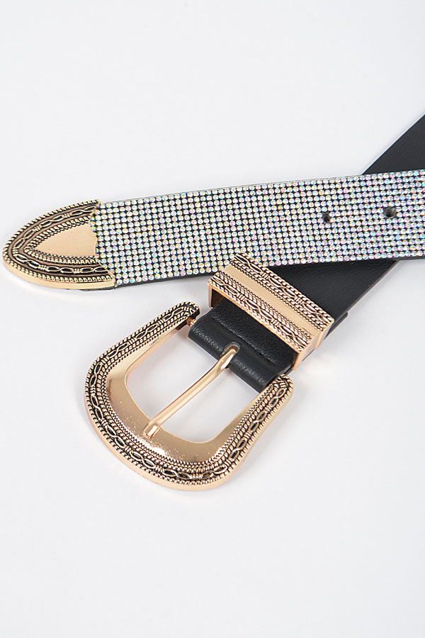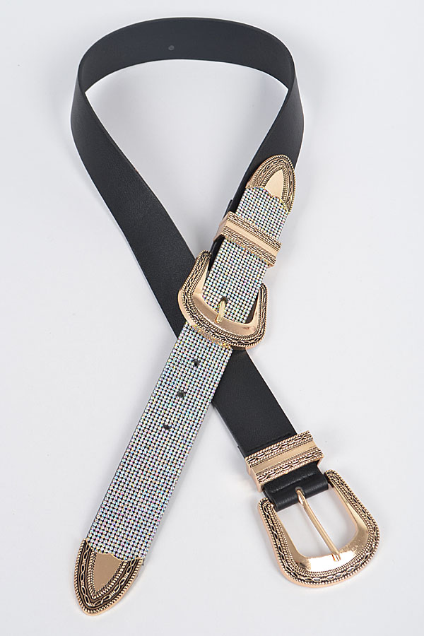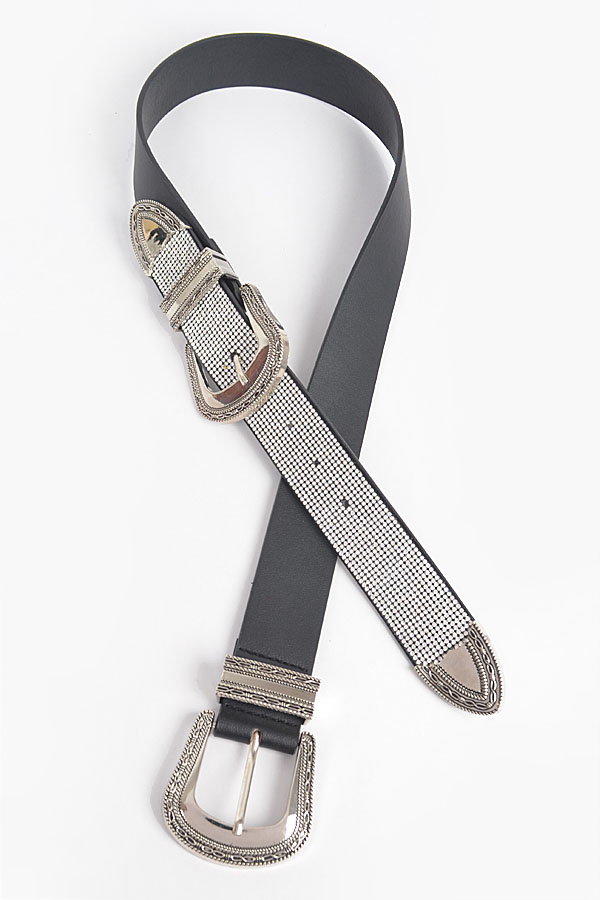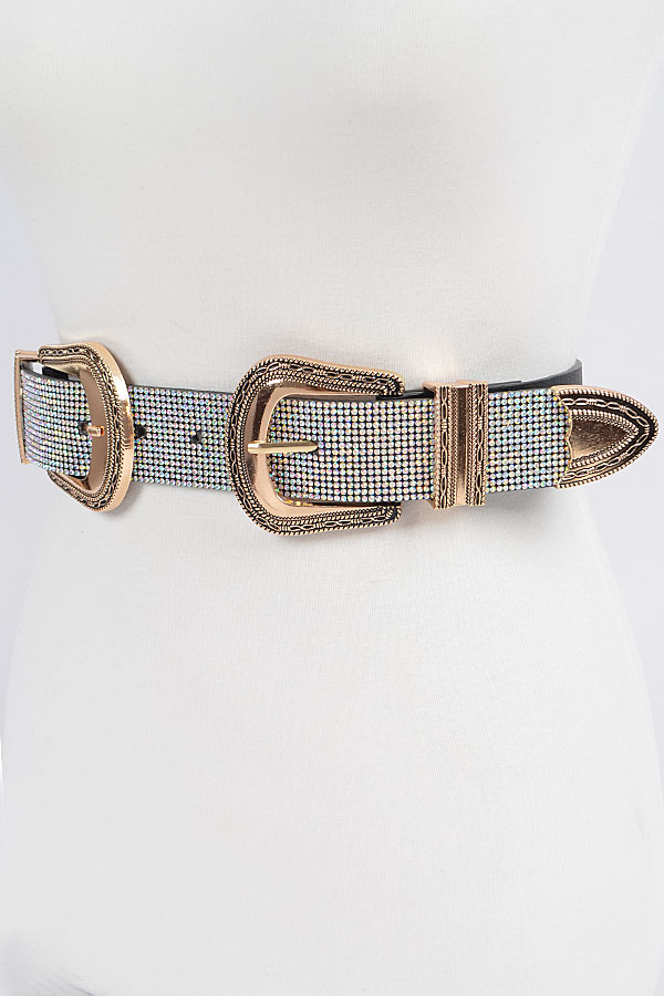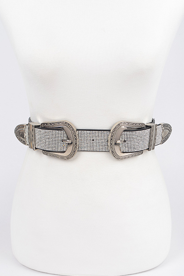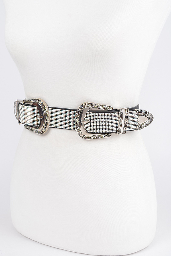 - * Rhinestone Two Buckles Waist Belt