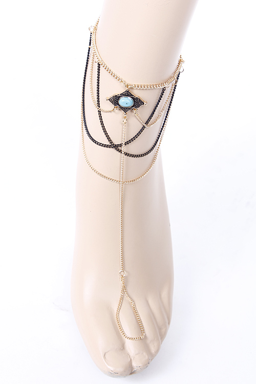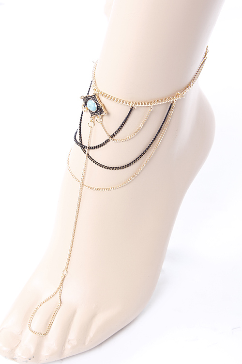 - * Two Toned Pendant Detailed Foot Chain 5FAF8 * 3 x 7" approx.