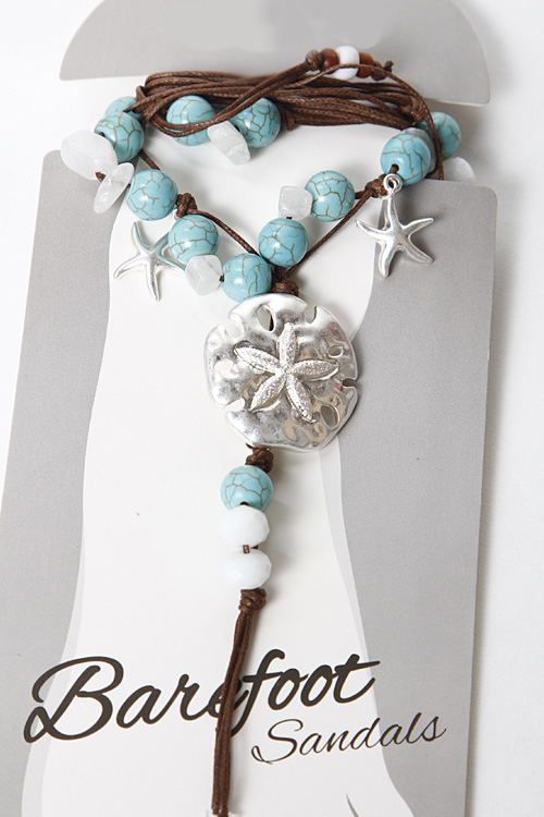 - * Starfish Pendant Beaded Foot Accessory 5FAF6 * 3 x 6" approx. * Comes in a pair