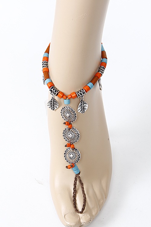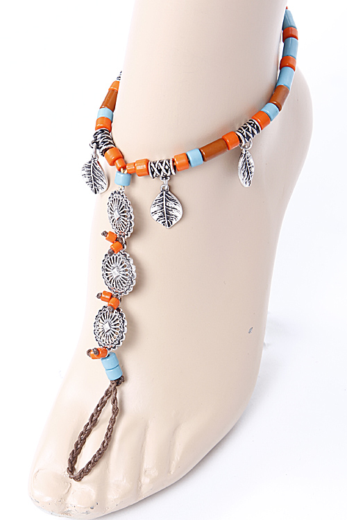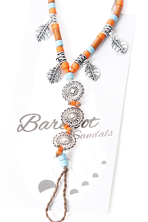 - * Feather Dangle Beaded Foot Accessory 5FAF2 * 3 x 6" approx. * Comes in pair