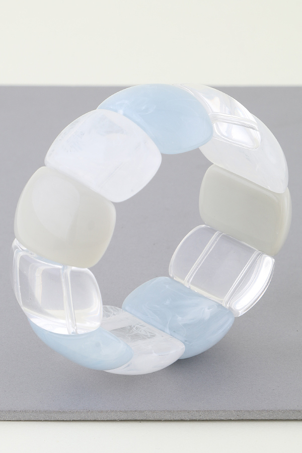 - * This Multi Pastel Stone Cuff Bracelet from H&D Accessories is a captivating piece. It features a flexible design with a combination of pastel - colored stones in shades of light. The smooth, translucent stones are arranged in an alternating pattern, creating a visually appealing and harmonious look. The bracelet's elastic construction ensures a comfortable fit for various wrist sizes.