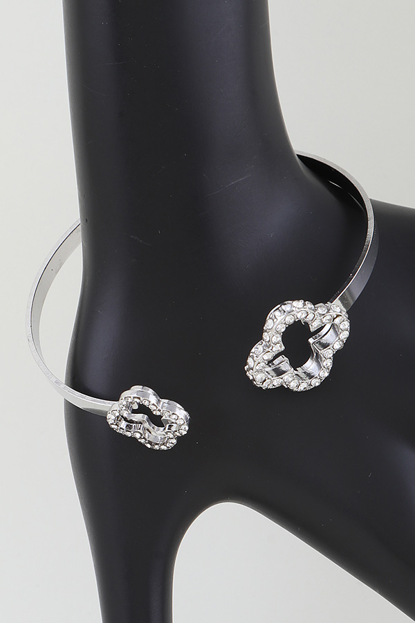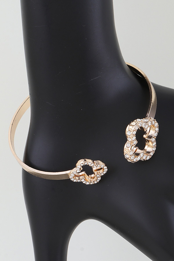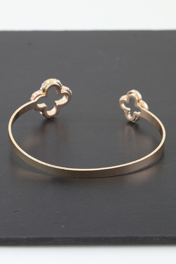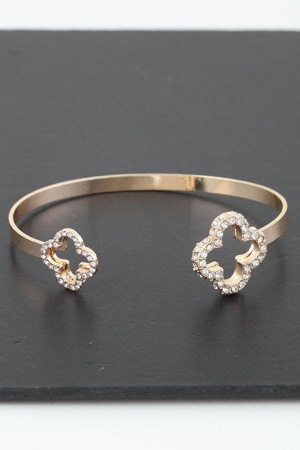 • * Introducing the "Radiant Clover Cuff" – a stunning gold bracelet adorned with two exquisite diamonds, perfect for adding a touch of elegance to any outfit. Elevate your accessory game with this luxurious piece from H&D Accessories.