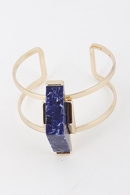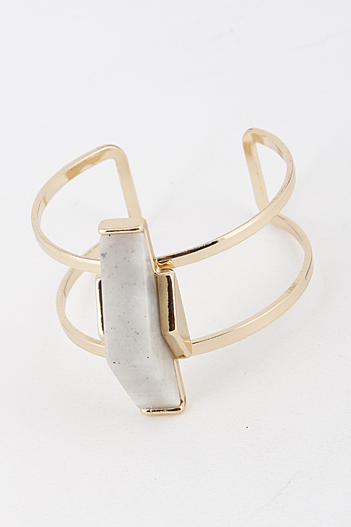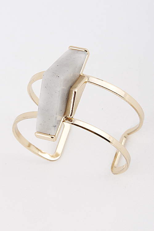 • * Triangle Faux Stone with Open Cut Out Cuff Bracelet 5JAE4 * 2.2X3.5" approx.