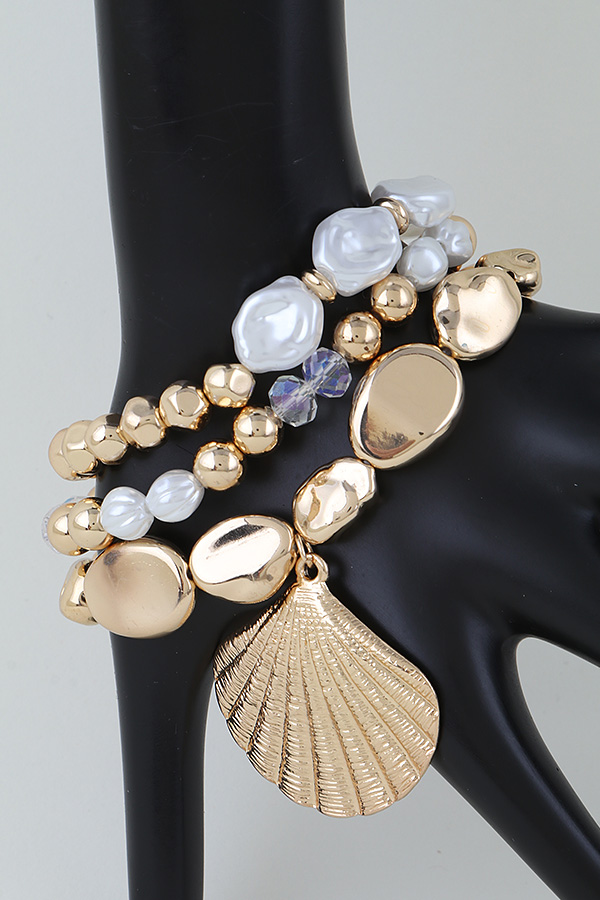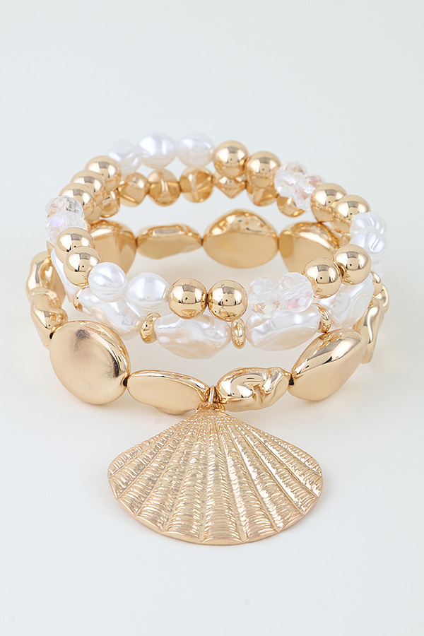 - * This is the Hammered Seashell Pendant Beaded Bracelet from H&D Accessories. It features a layered design with various beaded strands and a prominent hammered seashell pendant, creating a rich, textured, and beach-inspired look. The combination of different beads and the detailed seashell charm adds a playful and tropical flair. You can wear it when going on a coastal getaway, attending a summer beach party, or pairing it with a breezy linen outfit for a casual day by the ocean, instantly infusing your style with a sense of seaside elegance.
